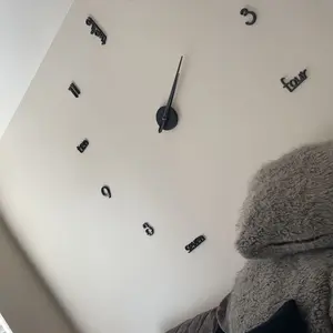 It's on the wall, the price was reasonable, my 11-year old was excited upon seeing the package took over the project. It's mounted but two of the numbers are black the rest are gold due to not having enough gold numerals for 1, 10 & 11. I DON'T like the look AT ALL But it's not a big deal
