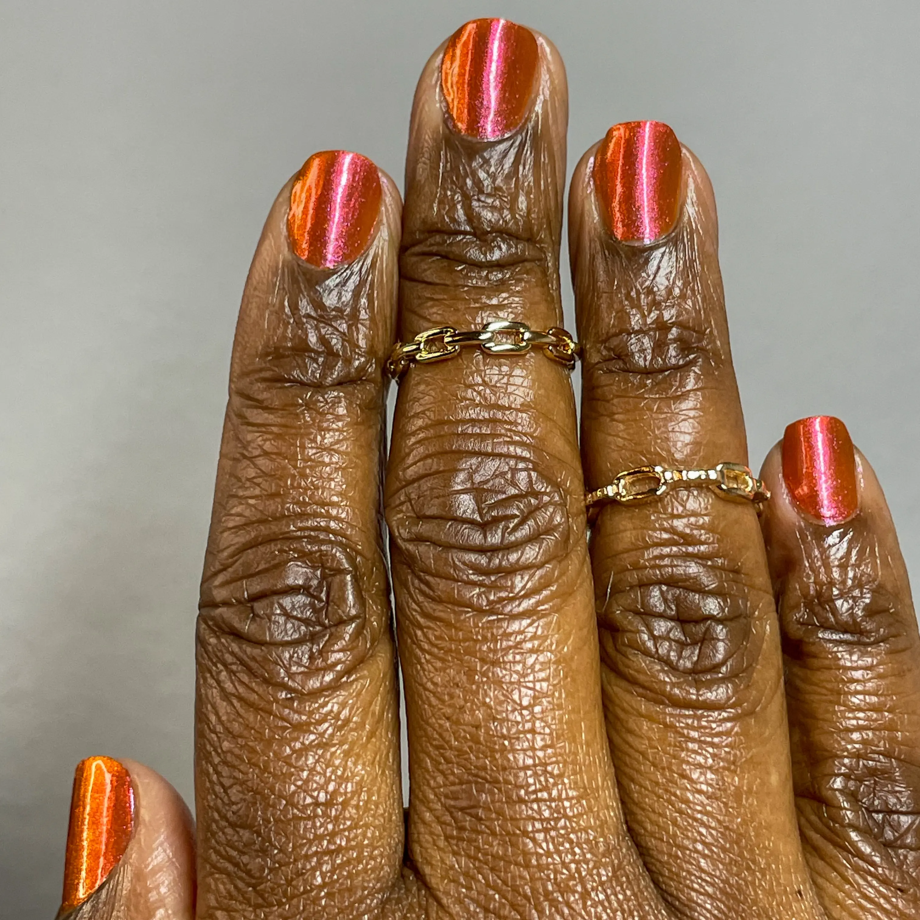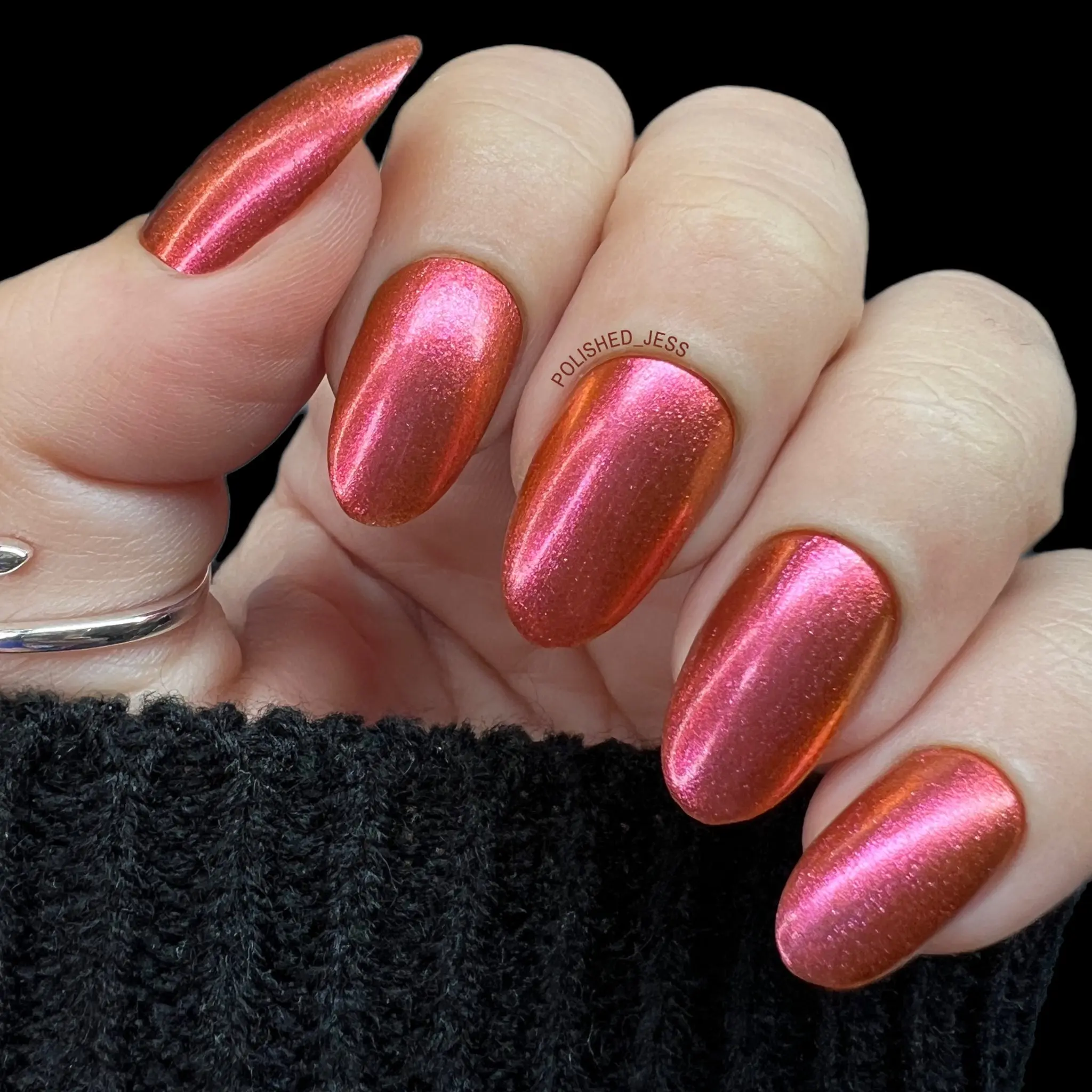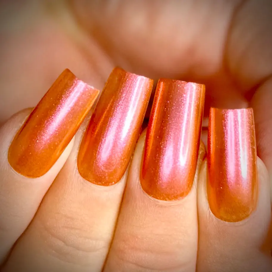 This nail polish color is just goregous. Its so sparkly and was very easy to apply. I always tend to end up with lumps or bubbles so Im very impressed with how smooth the polish dried. The packaging is absolutely adorable and very professional feeling. I love the matte handle. Will be buying more!