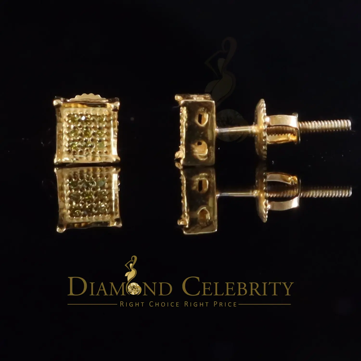 925 Sterling Silver 0.05ct Diamond Yellow Stud Women's / Men's Square Earrings