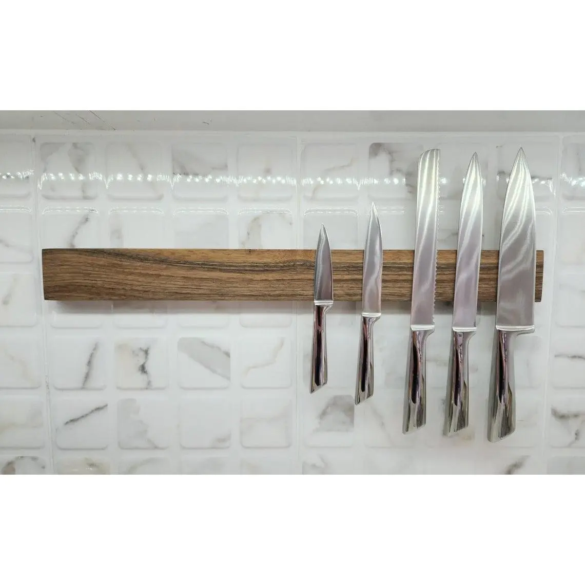 Add a touch of sophistication to your kitchen with the Walnut Wood Magnetic Knife Holder, a perfect blend of form and function. Handcrafted from high-quality walnut wood, this magnetic holder securely stores your knives while beautifully showcasing them. The strong magnets embedded within the walnut wood ensure that your knives stay in place, making this knife holder both practical and stylish.
