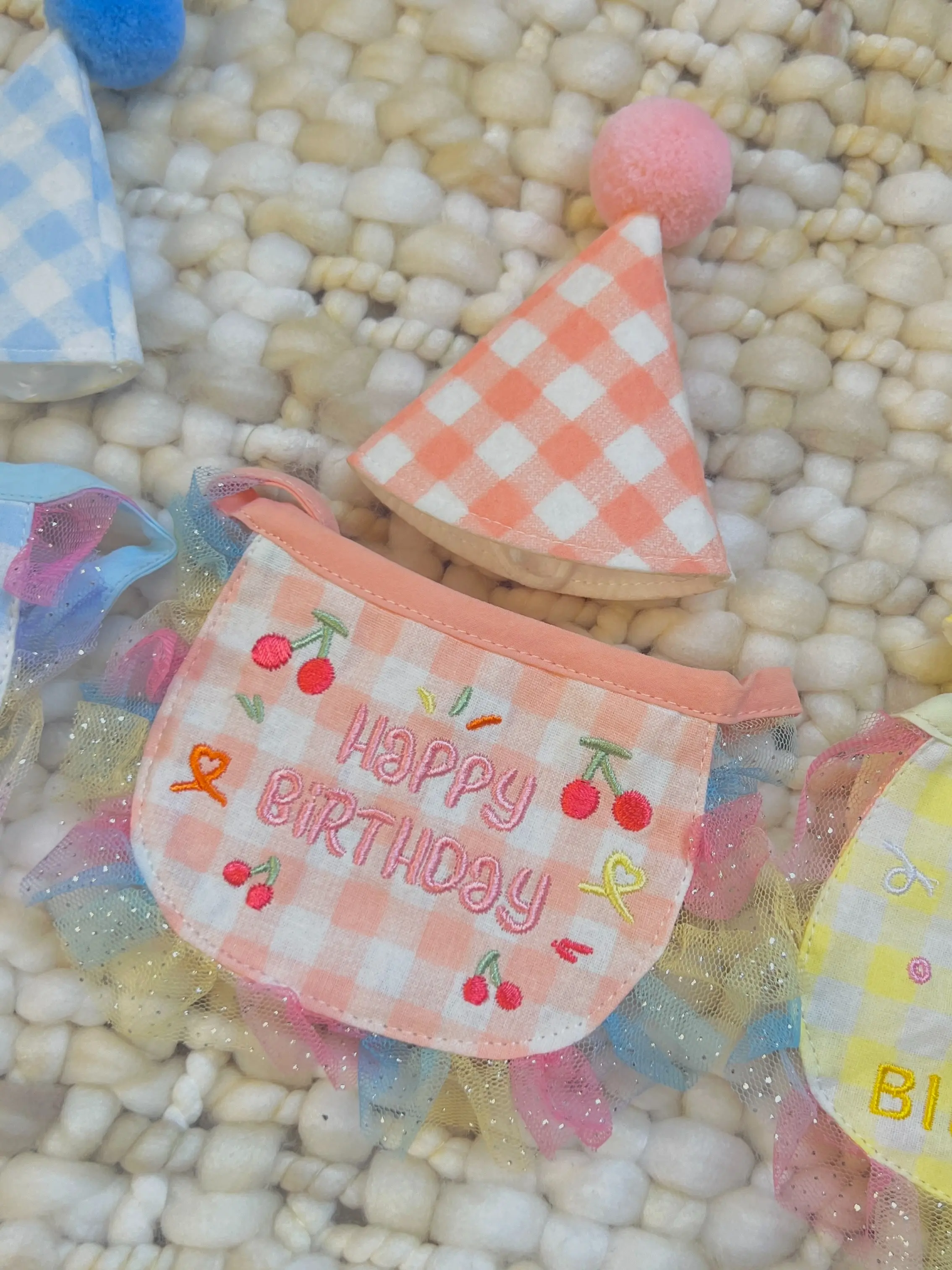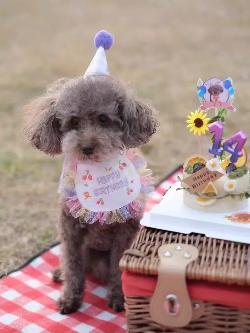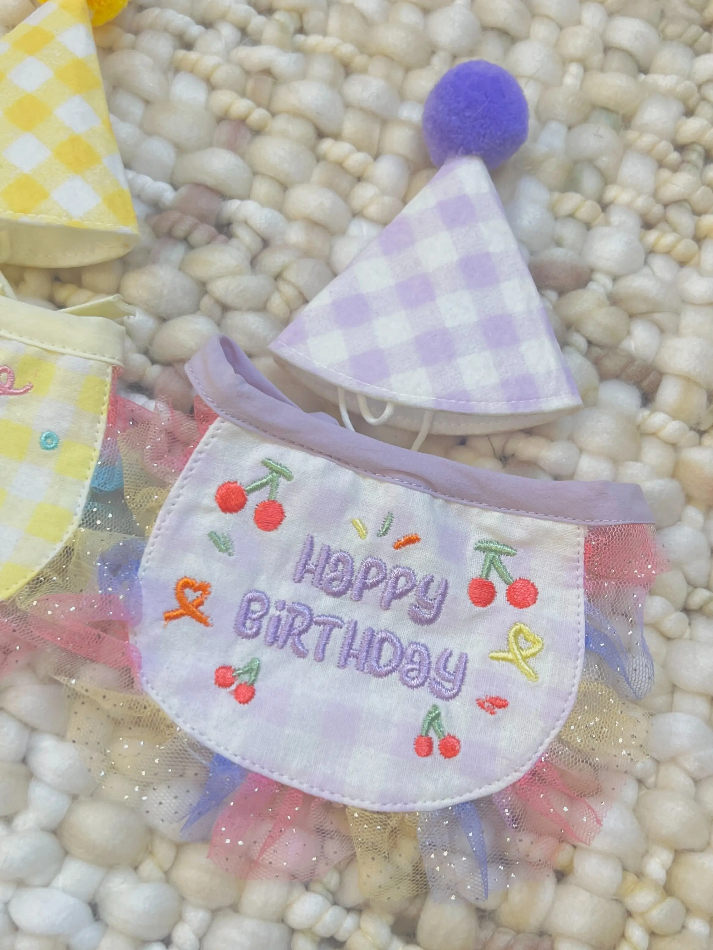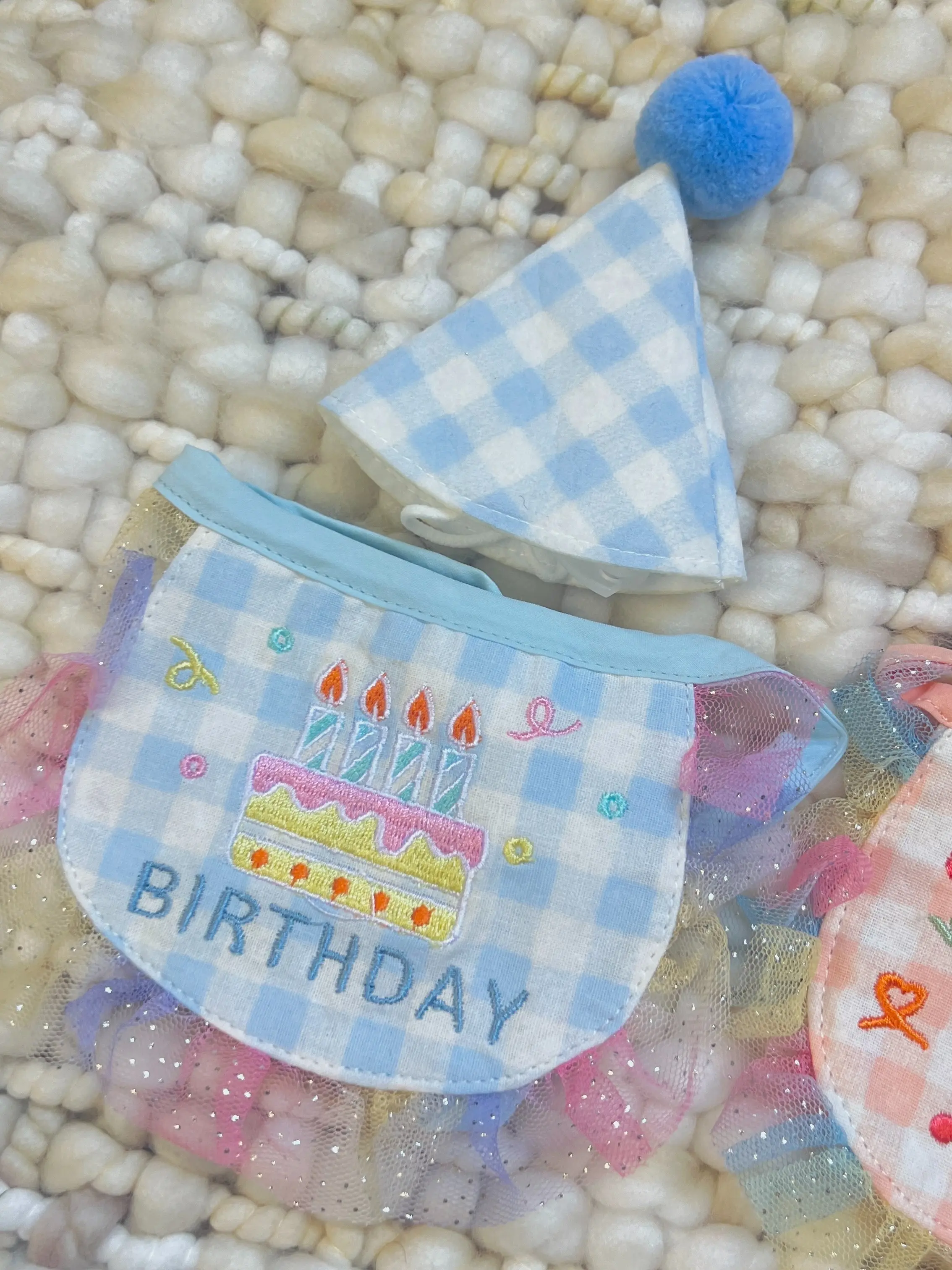 ·Festive Design: The gingham pattern, colorful pom-pom, and embroidered collar add a joyful and festive touch to your pet’s birthday outfit.