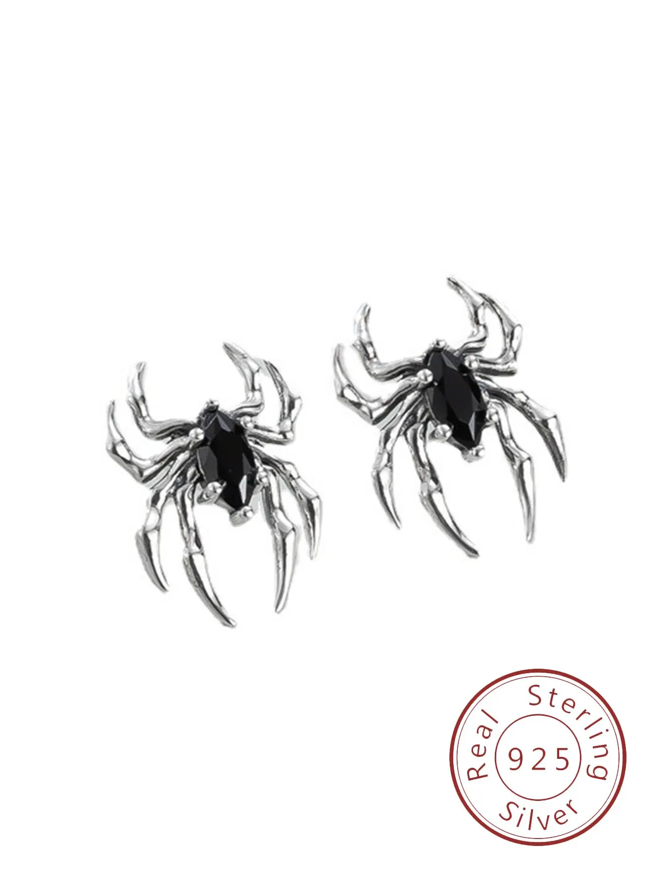 925 Sterling Silver Vintage Spider Design Earrings, High Quality Earrings, Fashionable Jewelry for Women & Men, Trendy All-match & Exquisite Jewelry for Birthday Gift