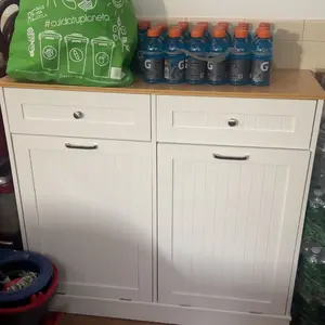 No me gustó que debes armarlo pieza por pieza algo muy complicado y no trae los tanques de la basura y si compras mal el tanque la puerta no cierra bien para el precio debería estar más barato lo consigues en otra página ya armado a mejor precio
