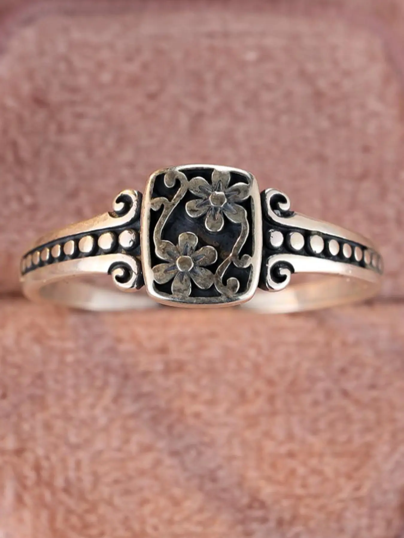 S925 Sterling Silver Vintage Flower Design Ring, Elegant Everyday Ring, Fashion Accessories for Both Men & Women, Trendy All-match & Exquisite Jewelry for Birthday Gift