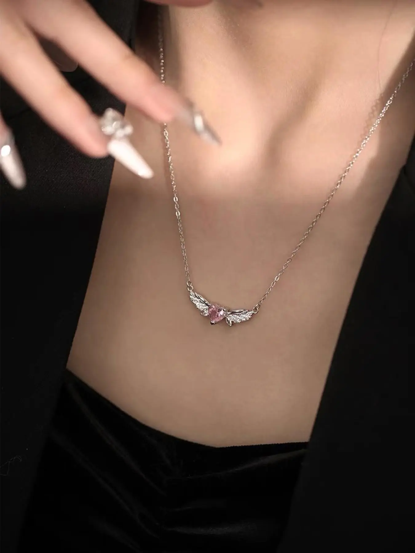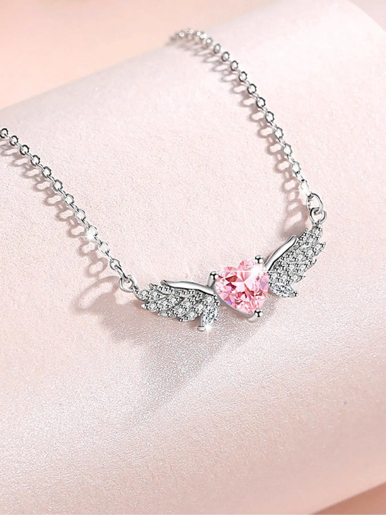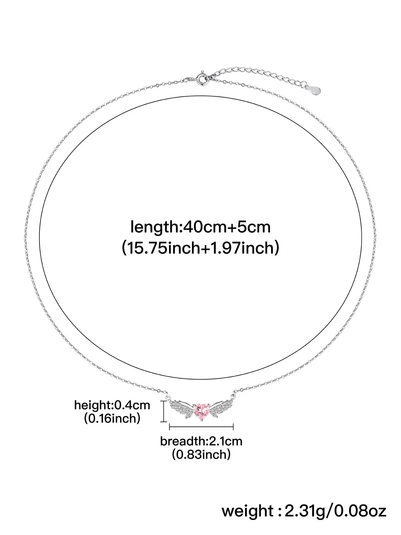 5. 925 Sterling Silver Cute Heart & Wing Rhinestone Pendant Necklace, Adjustable Necklace for Women, Fashion Jewelry for Party, Daily Decor, Exquisite Jewelry for Gift
