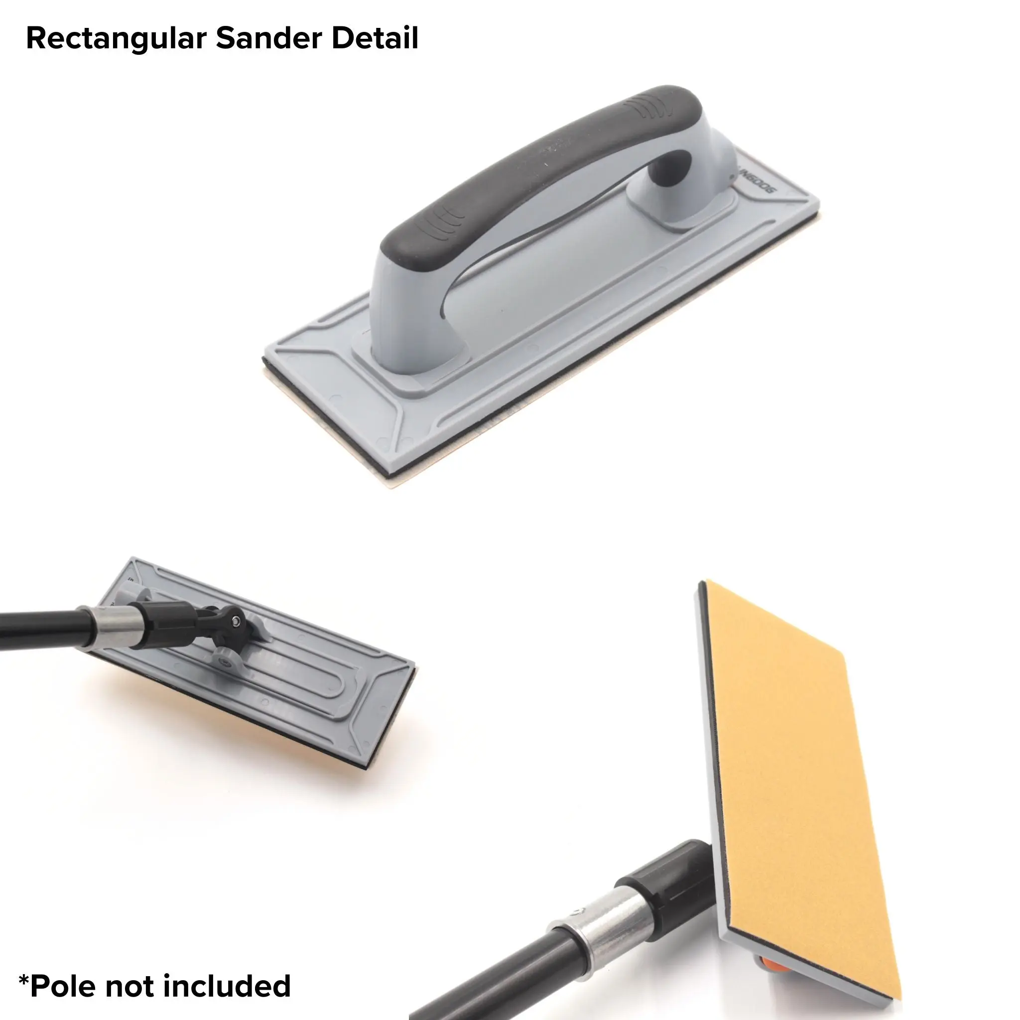 Use it by hand for tight spots or mount it to an extension pole for ceilings and large rooms. Includes both a round sander (for big areas) and a rectangular sander (for corners, edges, and tight spots).