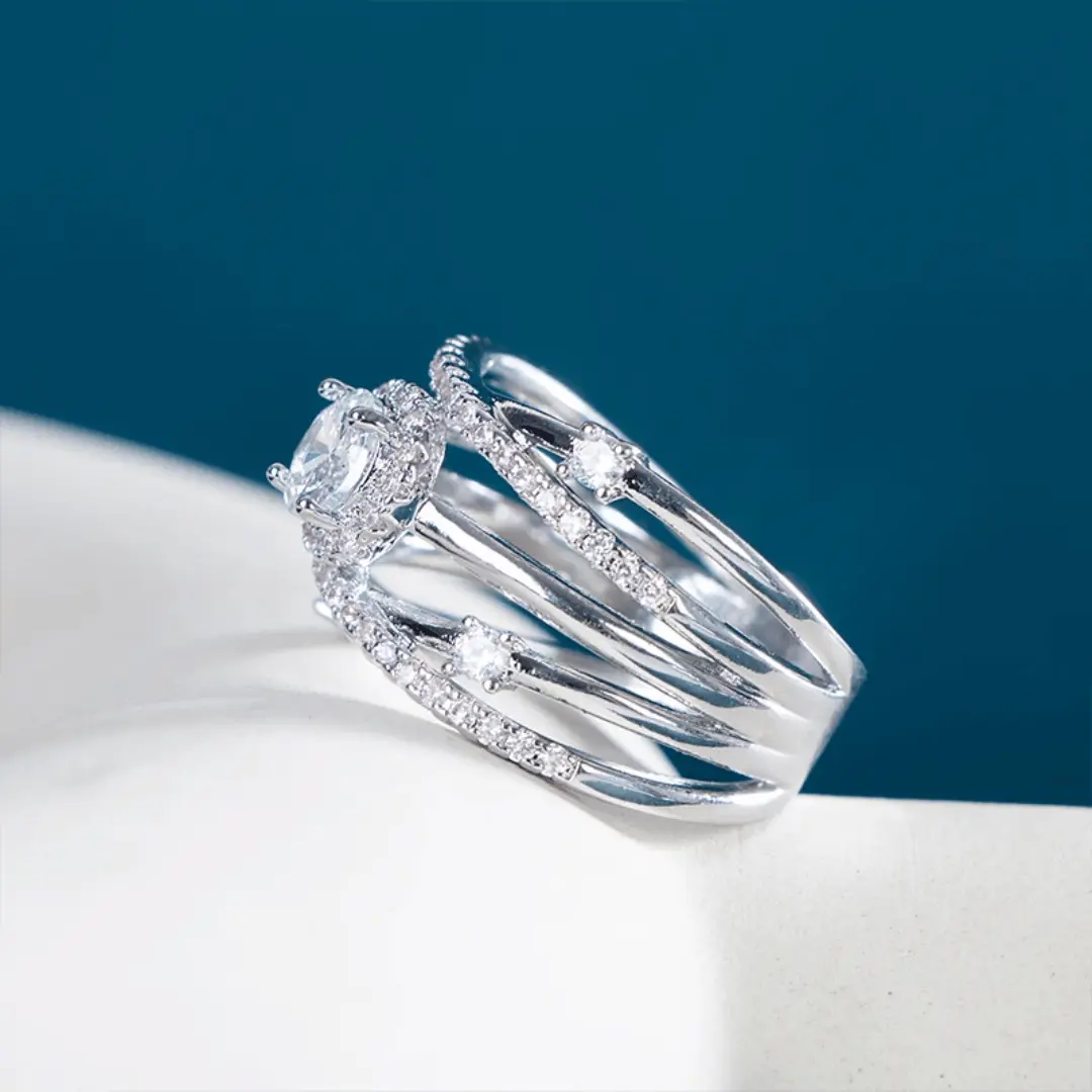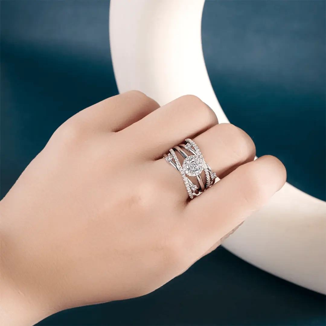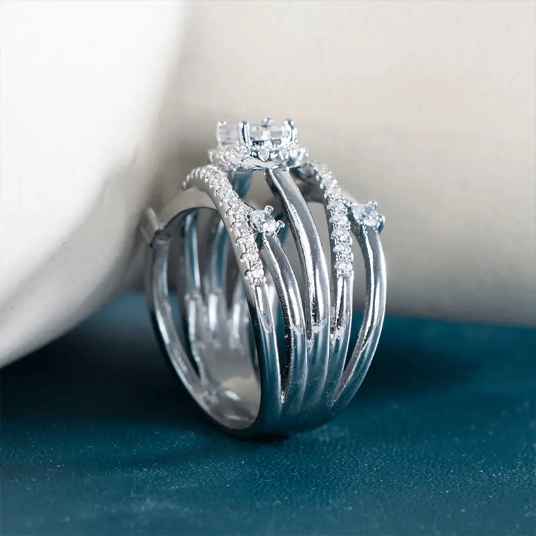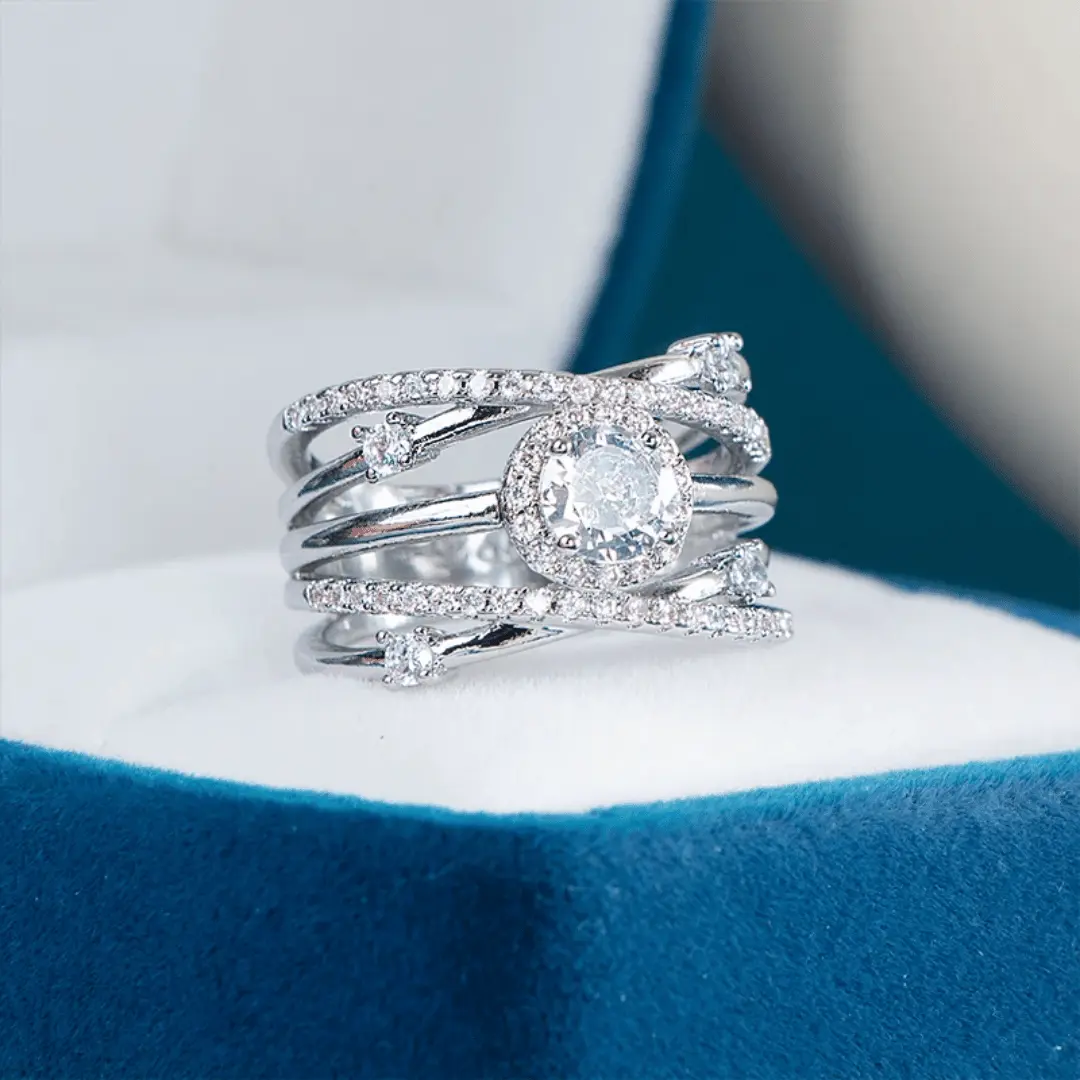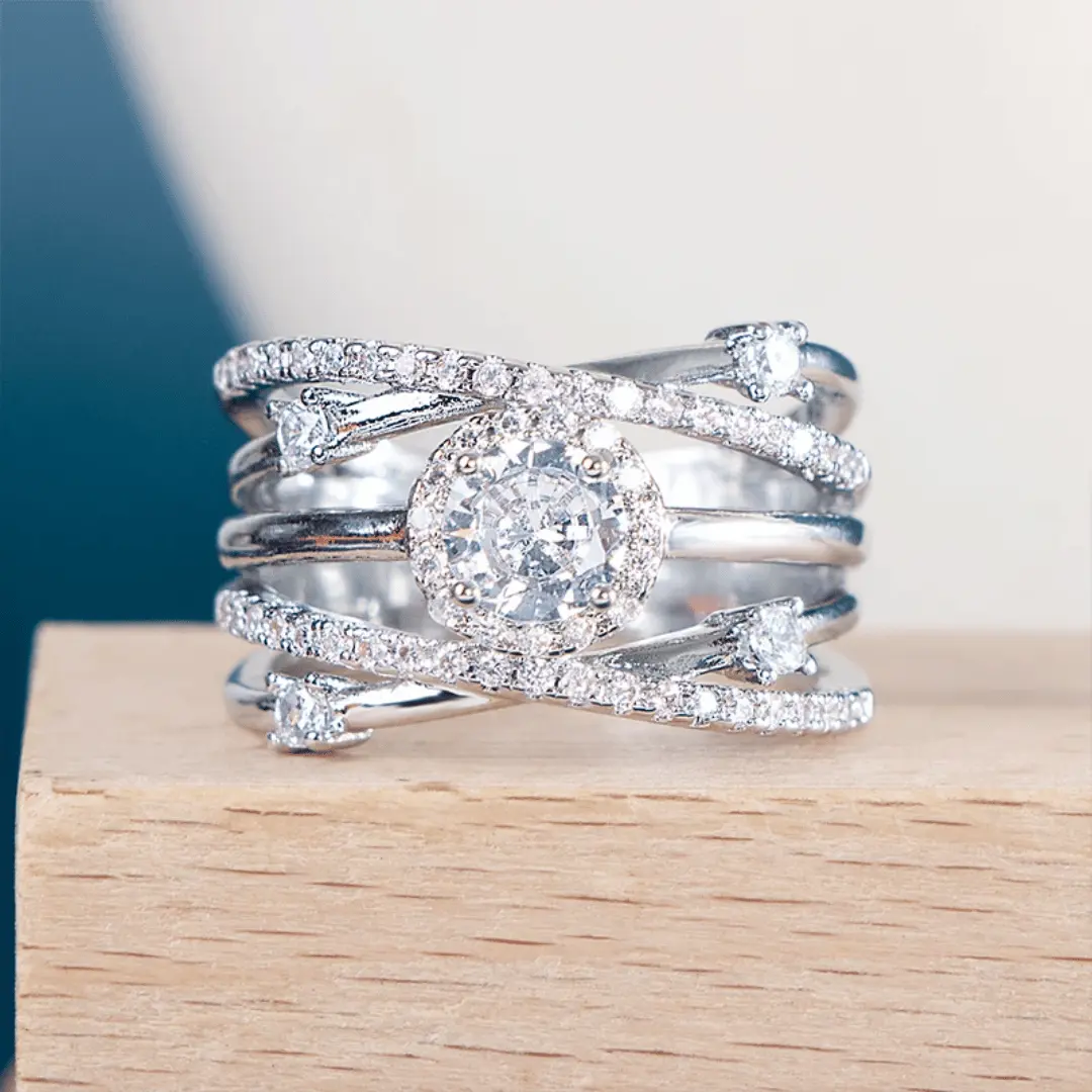 Sterling Silver Shiny Geometric Line Criss Cross Ring Cubic Zirconia Rings CZDiamond Multi Row Ring Eternity Engagement Wedding Band Ring for Women