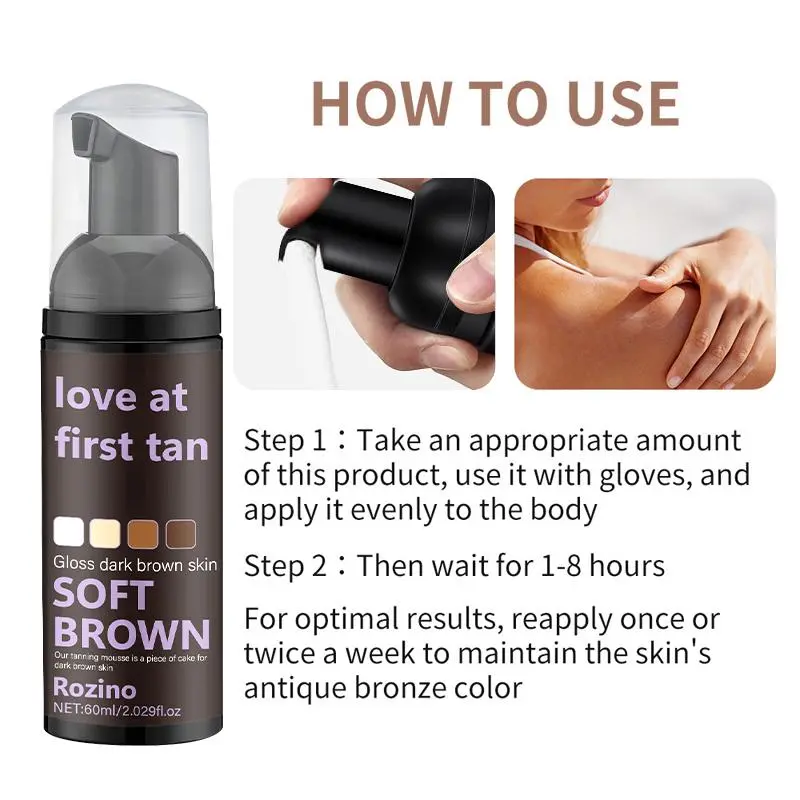 60ml Soft Brown Self Tanning Mousse, Natural Looking Self Tanner for Face & Body, Sunless Tanning Cream, Skin Care Product for Women & Men