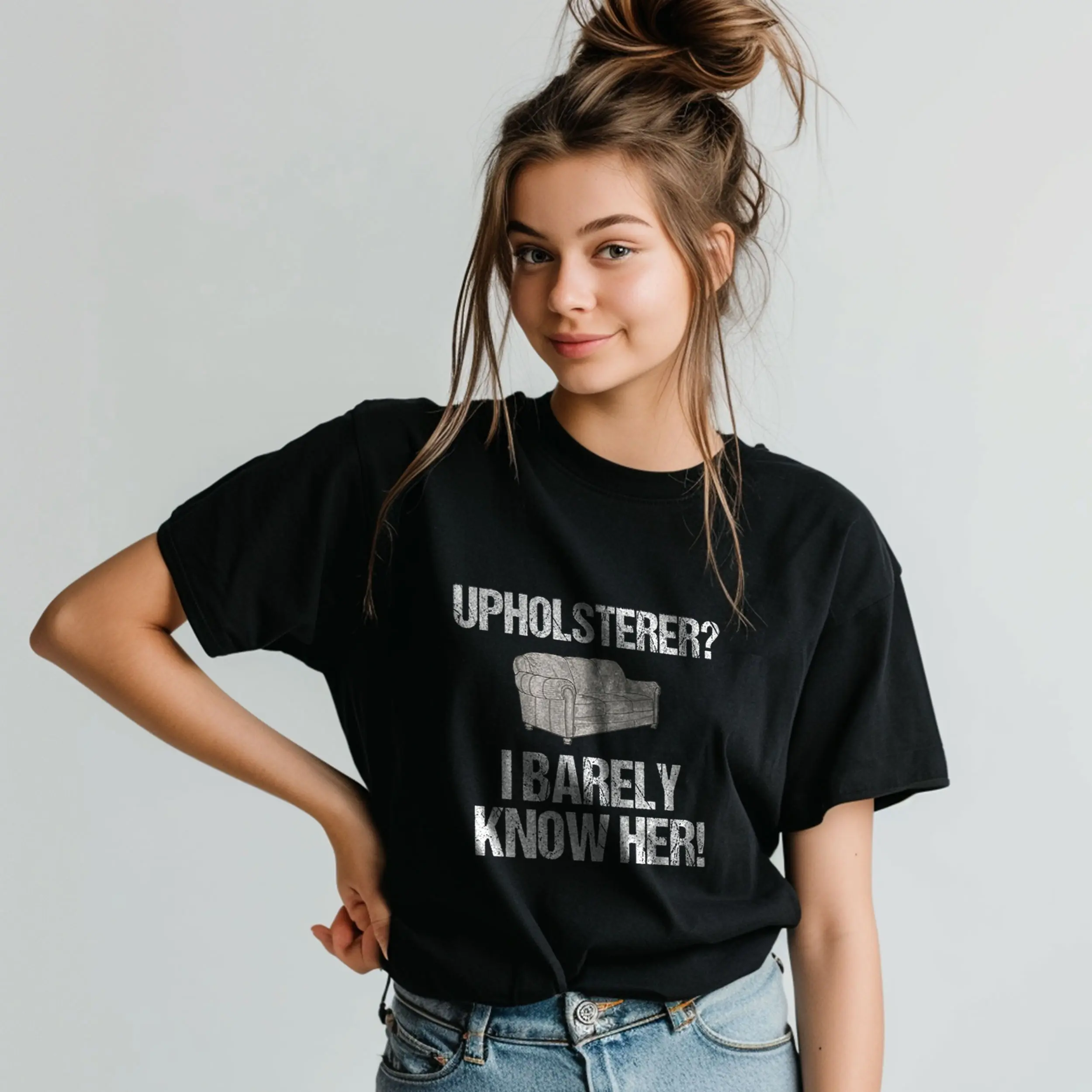 This Upholsterer I Barely Know Her JD Vance 2024 T-Shirt is a must-have for any casual occasion. Its unisex classic fit ensures a comfortable fit for everyone, and the short sleeves make it perfect for all seasons.