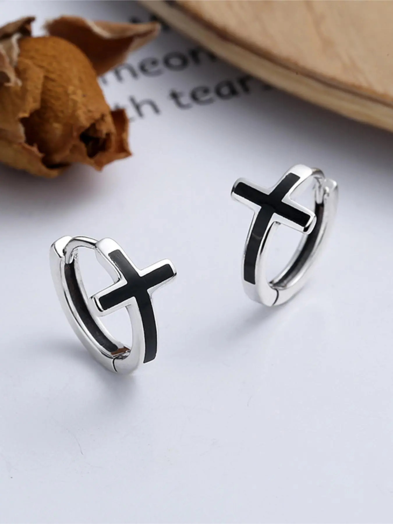 S925 Sterling Silver Street Style Cross Design Hoop Earrings, Fashion Hoop Earrings for Party, Daily Decor, Trendy All-match & Exquisite Jewelry for Birthday Gift