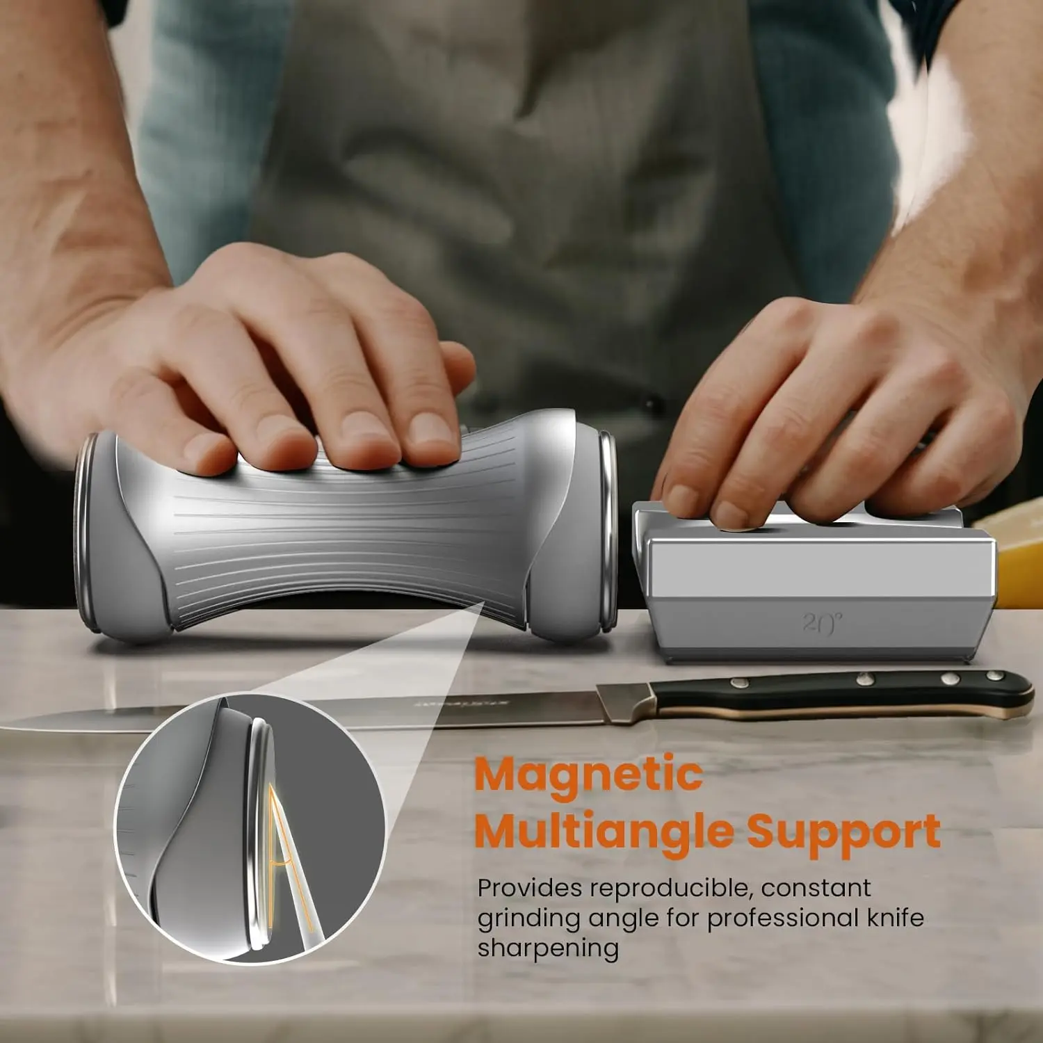 ·【Gift Box Packaging & Quality Service】: Our roller knife sharpener comes with high-end packaging, making it an ideal kitchen gadget for chefs, families, and outdoor enthusiasts. It's also a perfect gift for friends and loved ones. If you have any issues, contact us anytime; we're available 24/7 online.