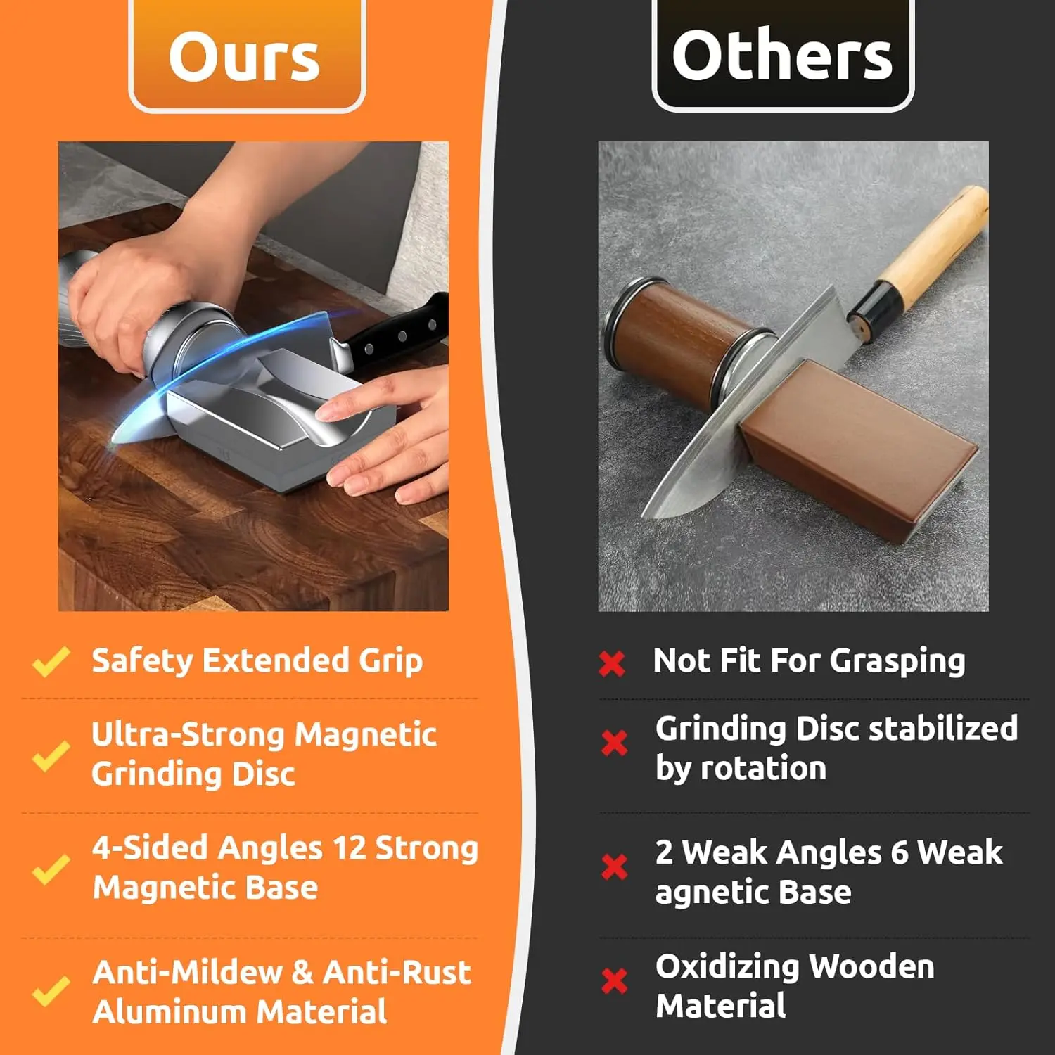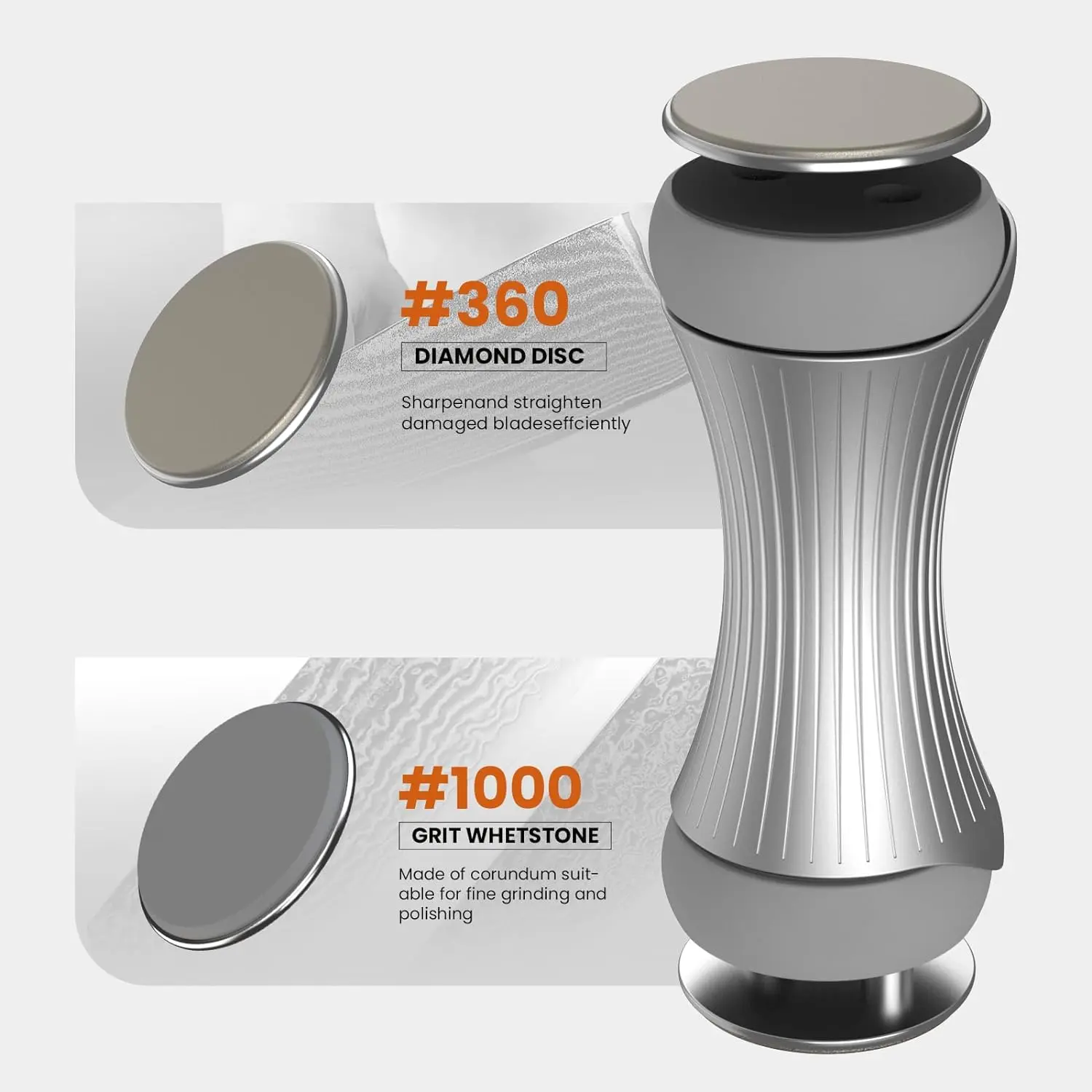 ·【Diamond and Whetstone Disc】The #360 diamond grit size effortlessly removes the first layer of the blade while restoring sharpness. Follow this with the #1000 whetstone disc to make professional knives even smoother and sharper.