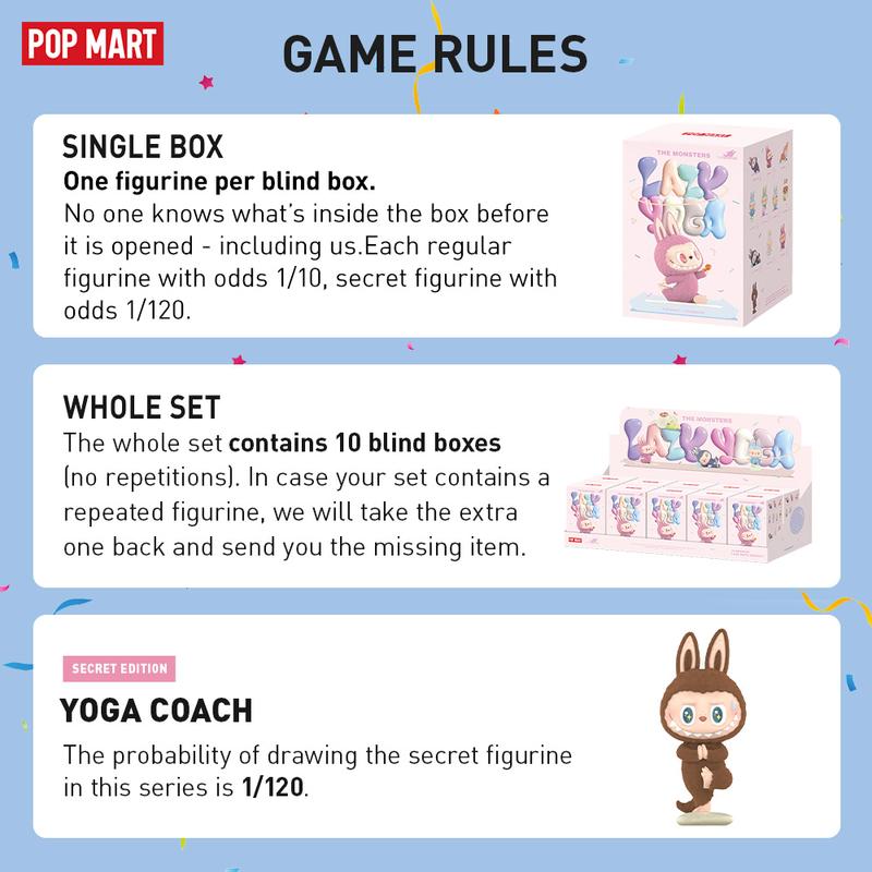·Blind Box: All items are figurine products with different designs. Each box contains one random design for value of 19.99 USD, and comes in a sealed box with no one knows what's inside-including us. This whole collection contains 10 regular figurine products (Odds: 1/10), and 1 secret edition(Odds:1/120).