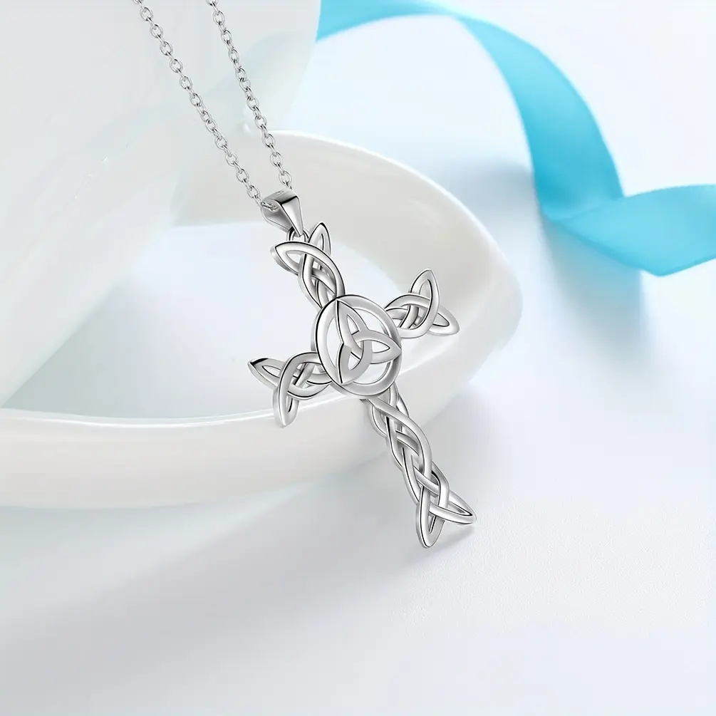 ❤ The Celtic cross is a religious symbol, deeply rooted in Irish history. Wearing this Celtic trinity knot cross will be a comforting reminder of your faith, devotion and strength. Finely crafted in polished sterling silver and suspended from a classic rolo chain. Springring clasp, sterling silver Celtic cross necklace