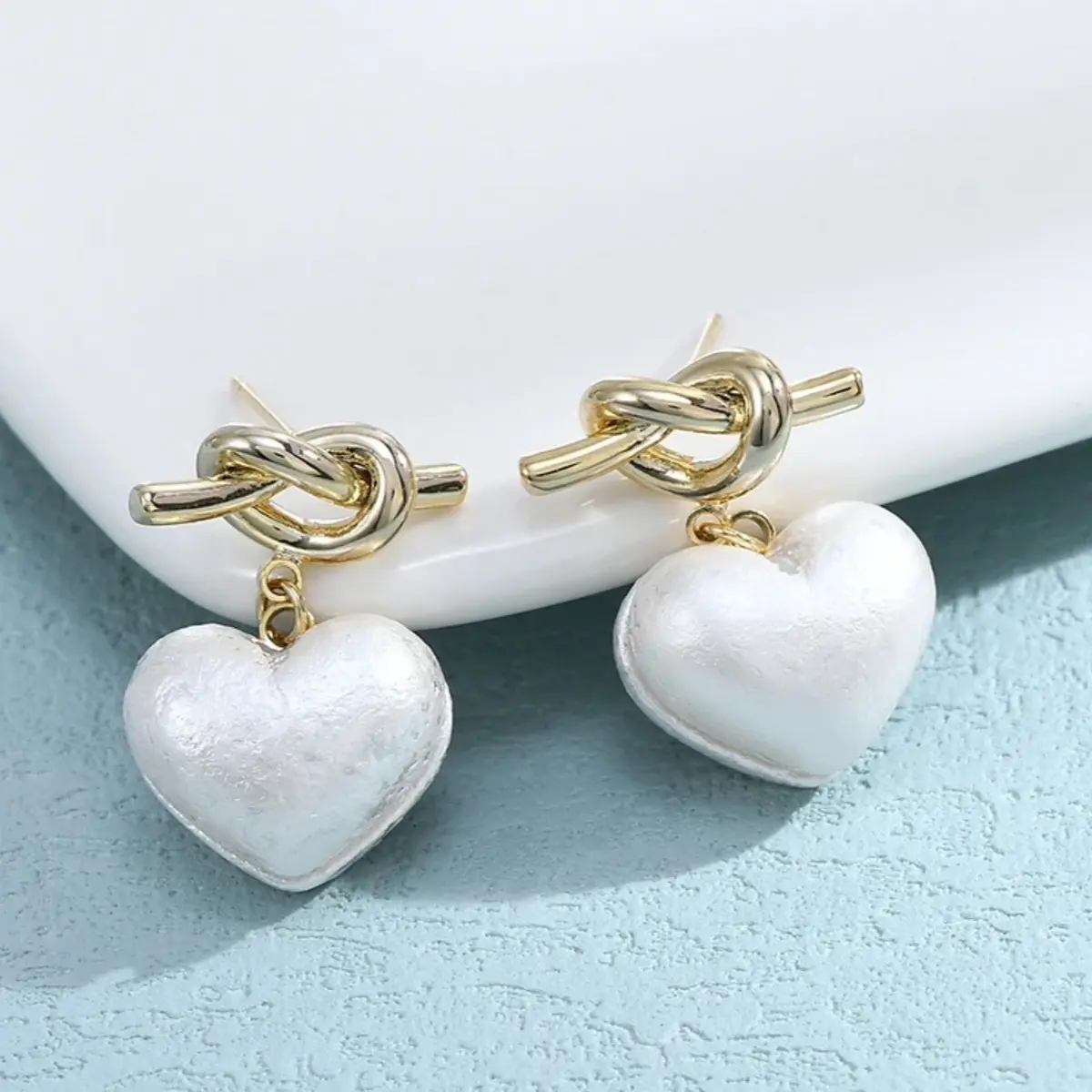 Overall, these heart-shaped pearl earrings are a beautiful and romantic addition to any jewelry collection. The gold-tone accents, white and gold design, and pearls make them a versatile and stylish choice for any occasion.