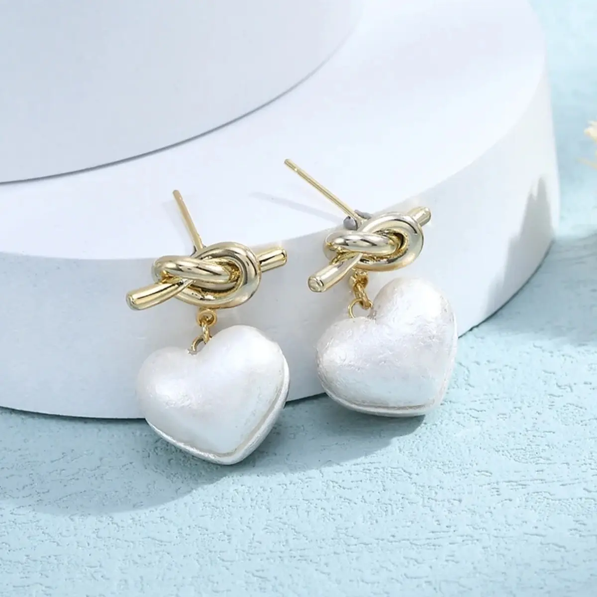 These heart-shaped pearl earrings are a beautiful and romantic addition to any jewelry collection. They are perfect for those who want to add a touch of elegance to their everyday look or for special occasions.