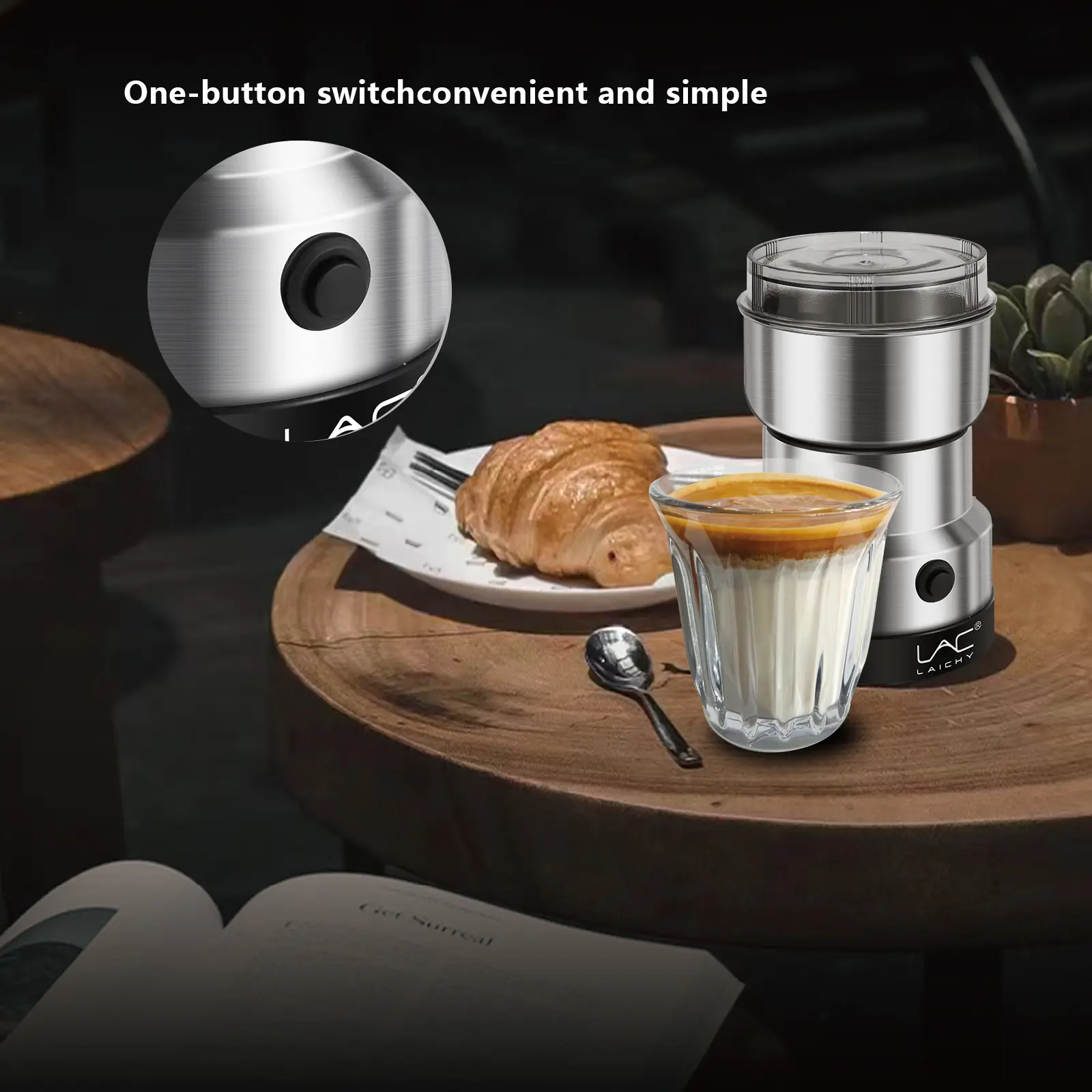 Save Your Precious Counter Space: LAC LAICHY coffee grinder offering a wide range of abilities. Excellent stainless steel blade chops ingredients through rapid spinning, so it not only works well with coffee beans but also works spice, seed, nut, herb.