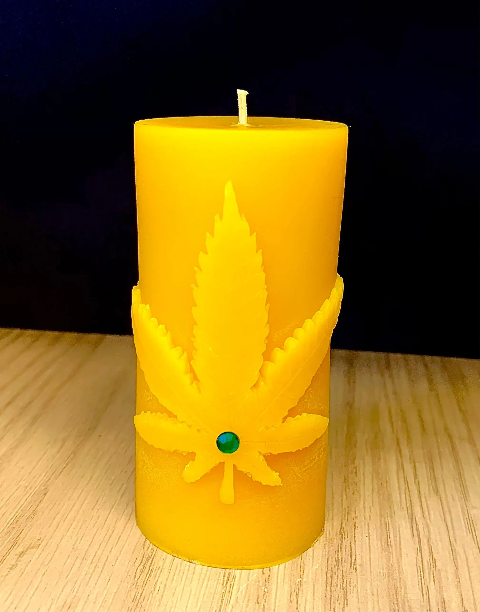For sale is one pure beeswax decorative candle designed with marijuana leaf and a shiny rhinestone as a decor.
