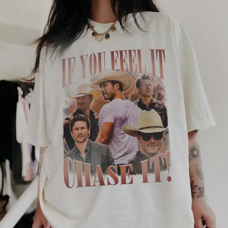 If You Feel It Chase It Unisex T-shirt, Glen Powell As Tyler Owens Unisex Shirt, Cotton All Sizes Colors for Men and Women, Full Colors, Full Sizes