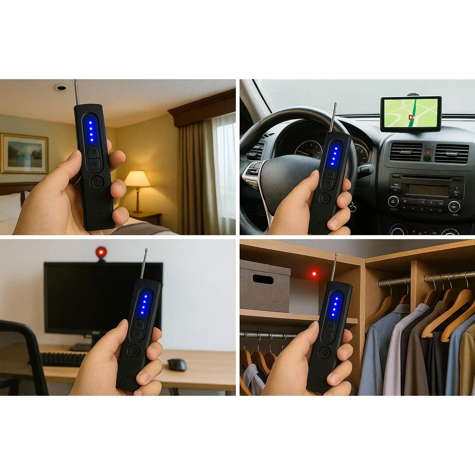 ·Airbnb & Hotel Sweeps: Quickly identify hidden cameras in smoke detectors, mirrors, and digital clocks.