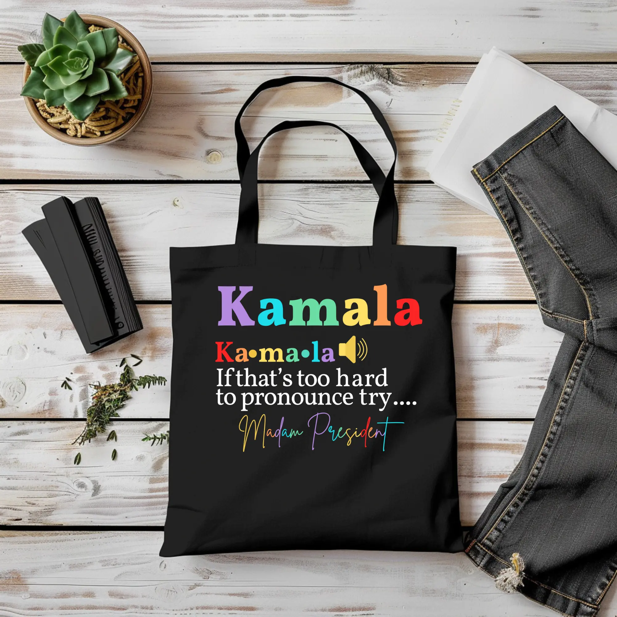 This is a true MUST HAVE for this years' 2024 election and to represent Kamala as a proud Democratic supporter! Show your support with our simple "Madam President" Cotton Canvas Tote Bag! This Kamala 2024 Cotton Canvas Tote Bag is a must-have for Democratic enthusiasts and is perfect for rallies, events, or everyday wear. Make a statement with our unique Kamala Harris Election Cotton Canvas Tote Bag and join the movement and stand out in style!
