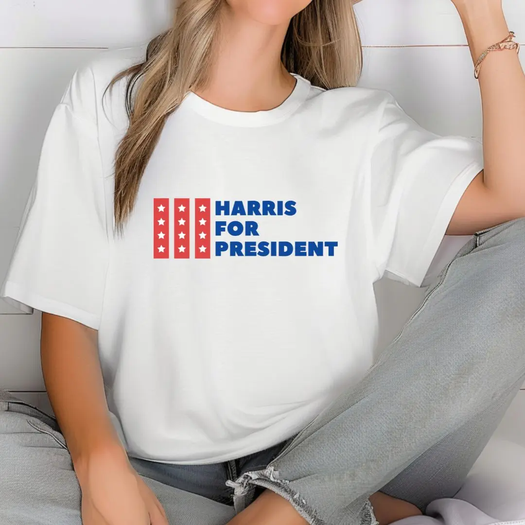 Show your support for Harris's presidential bid with this striking and stylish T-shirt. Made from premium, soft fabric, it offers unbeatable comfort for all-day wear. Ideal for political gatherings, events, and daily wear, it makes a bold statement while keeping you comfortable. Available in various sizes and vibrant colors to match your personal style and preferences. Wear it proudly and enjoy the perfect blend of style, comfort, and support.