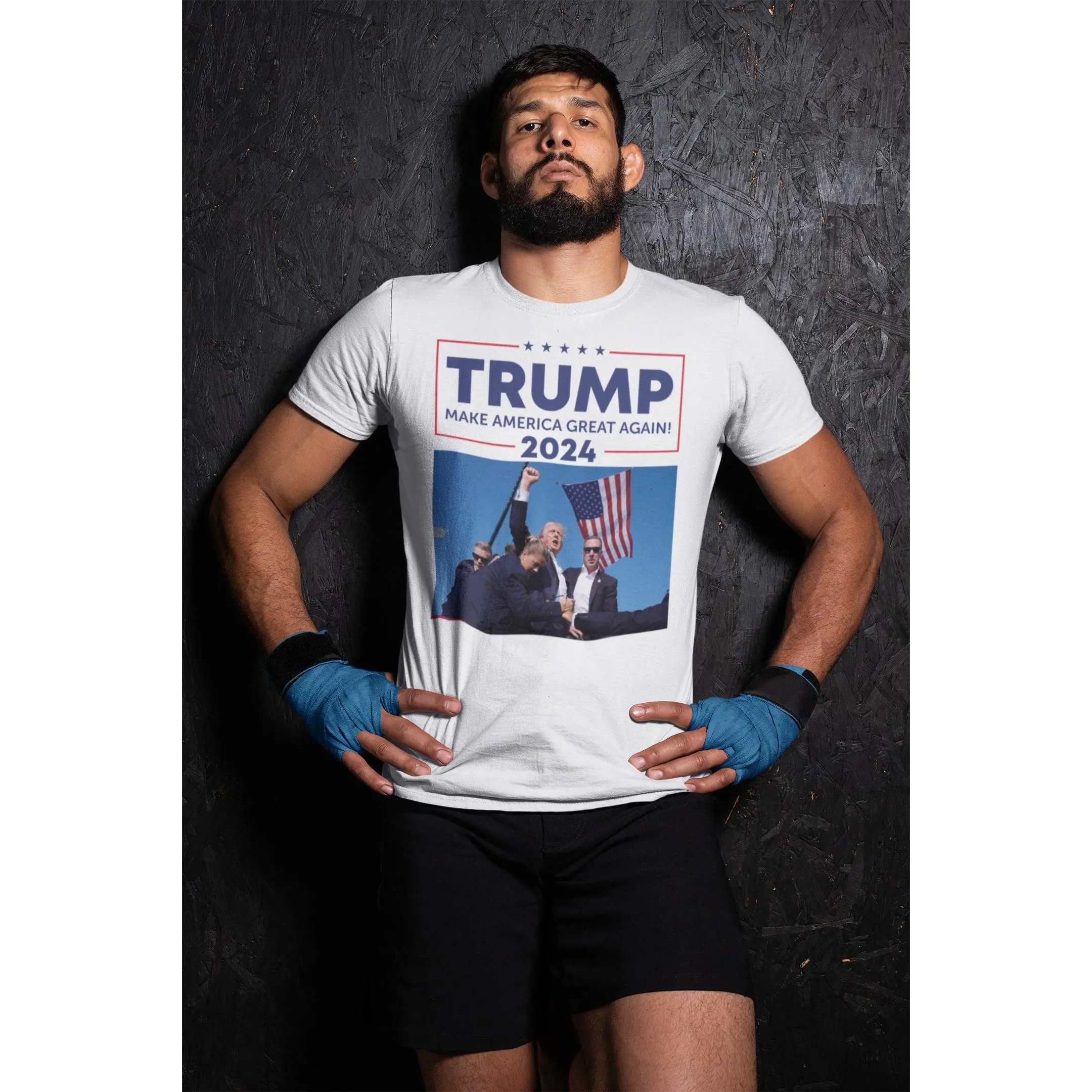 Wear this t-shirt as a proud statement of solidarity and support. Whether you're attending a rally, gathering with fellow supporters, or simply showing your pride, this t-shirt is the perfect way to honor President Trump's resilience and indomitable spirit.