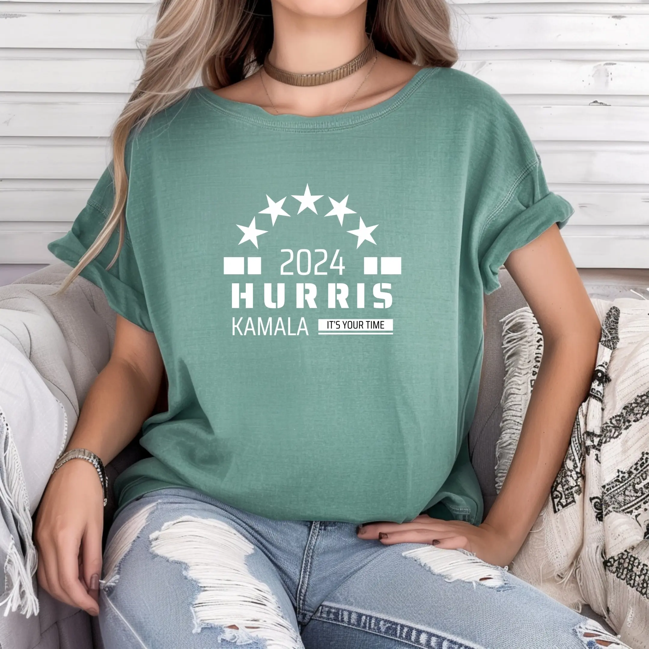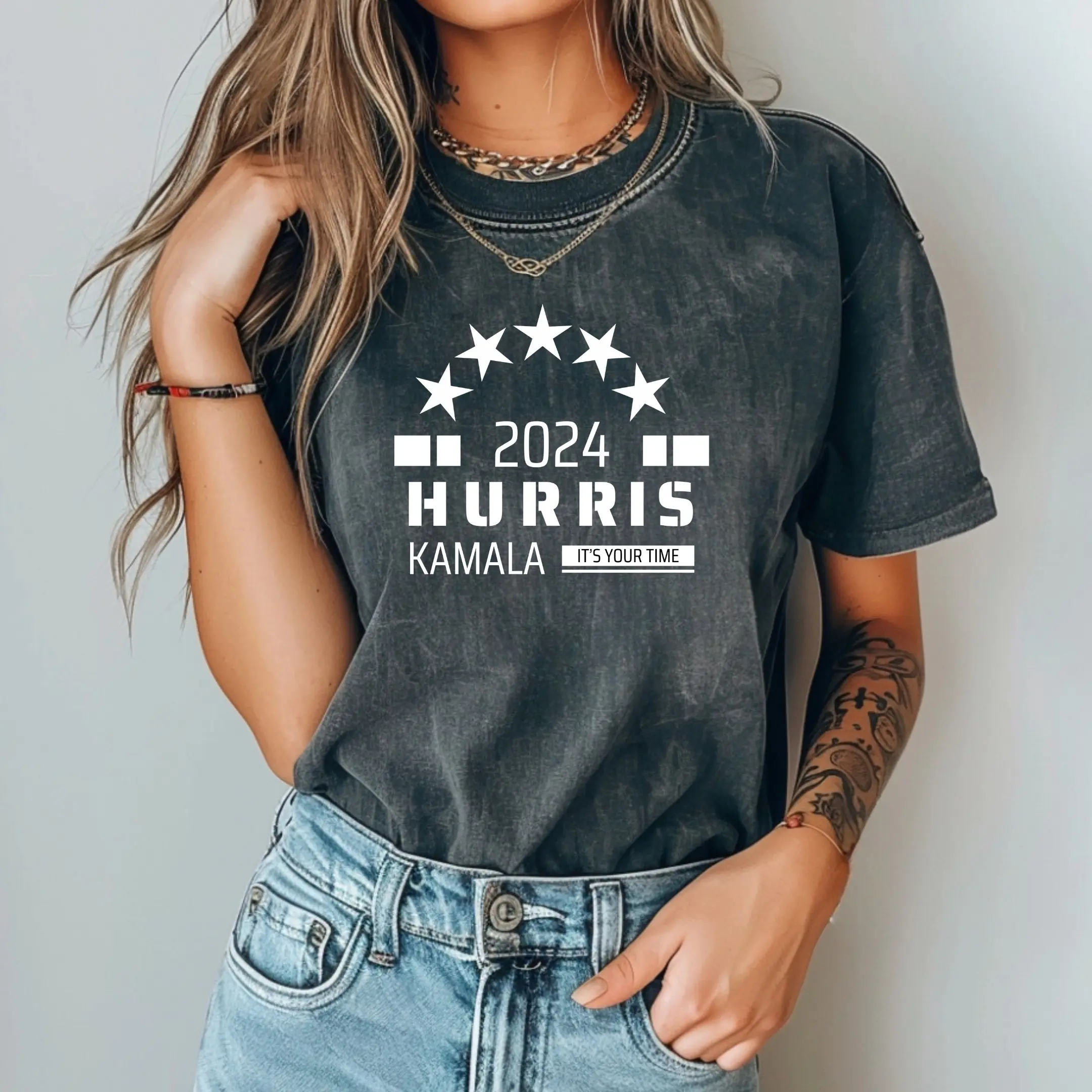 Step into the future with confidence and style by wearing this standout "Harris for President 2024 - It's Your Time" T-shirt. Crafted from high-quality, soft fabric, it ensures maximum comfort for any occasion. This T-shirt makes a powerful statement of support, perfect for political rallies, events, or casual everyday wear. Available in various sizes and vibrant colors to suit your unique taste. Show your enthusiasm and make your voice heard with this exceptional piece of apparel.