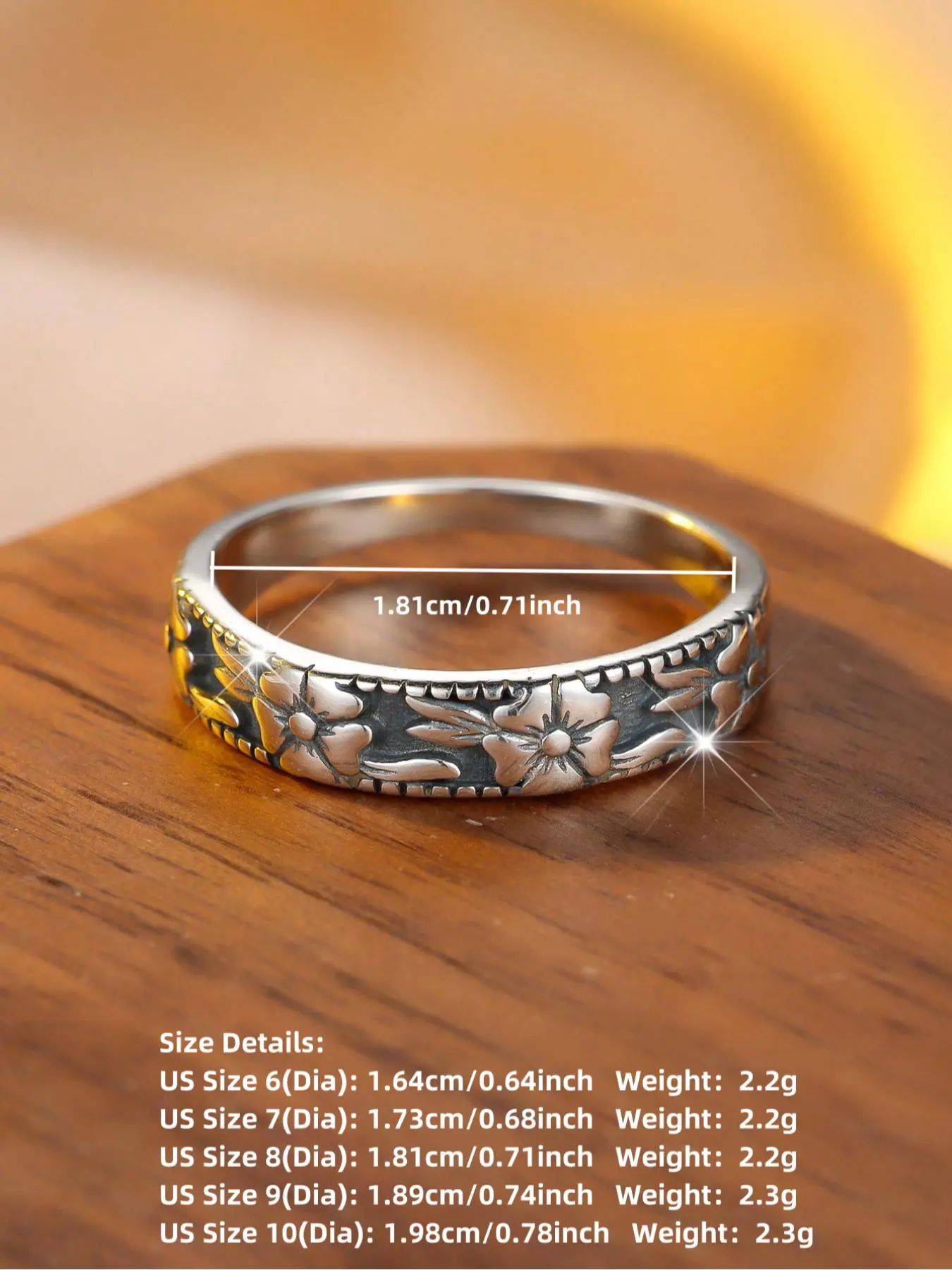【Unique Embossing】: The intricate vintage flower embossing adds a distinctive element, setting this S925 sterling silver ring apart from typical jewelry pieces.