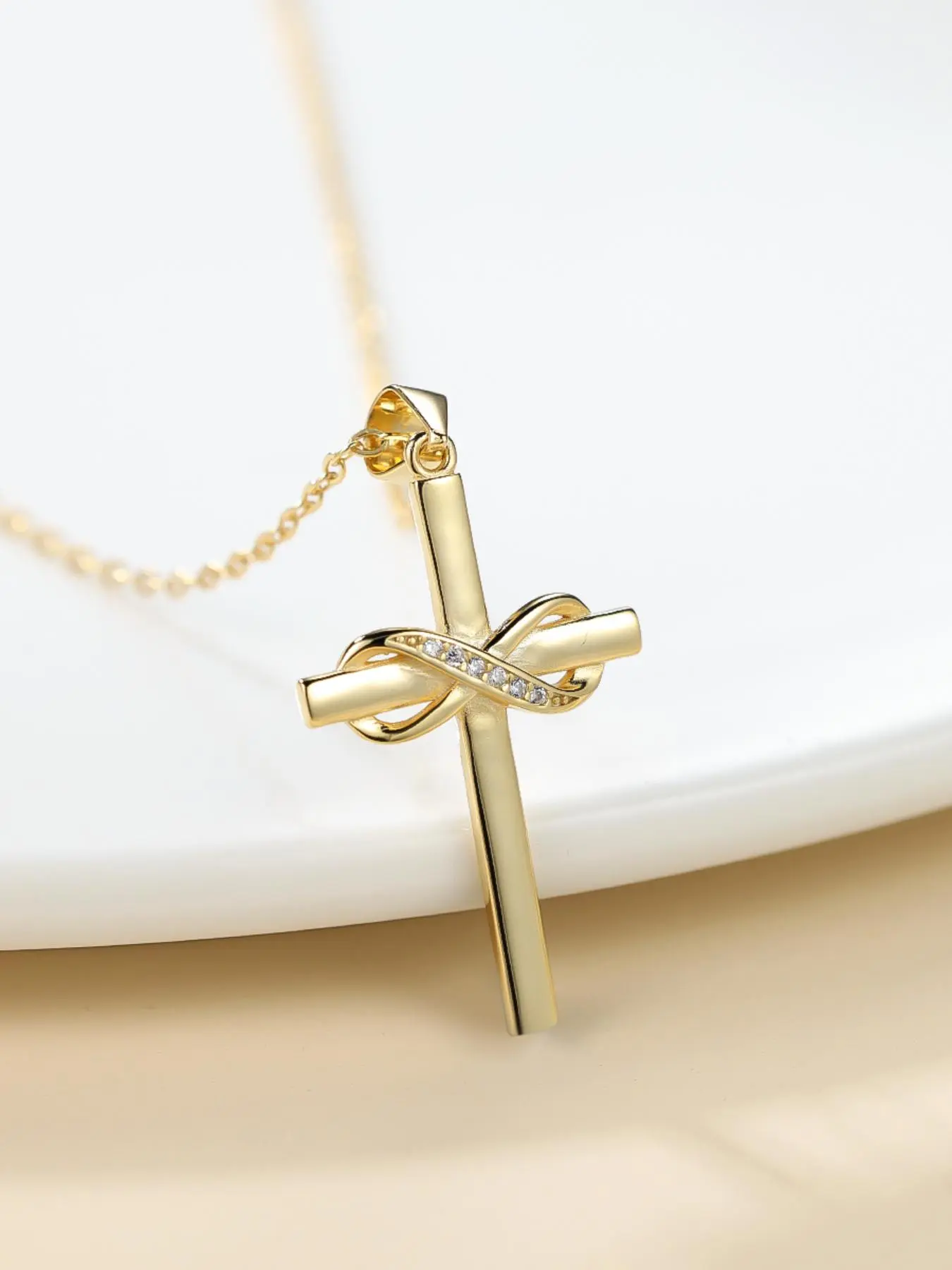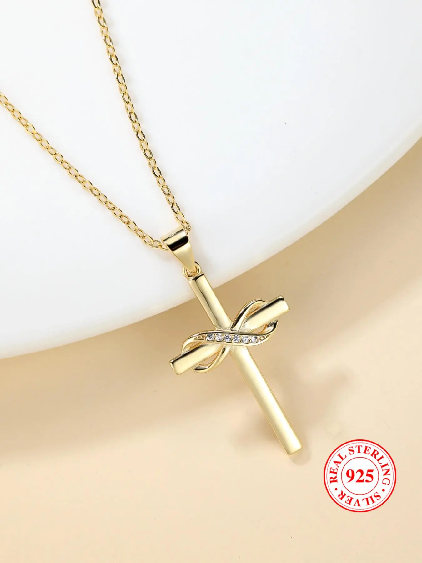 S925 Sterling Silver Infinity Cross Pendant Necklace, Elegant Women's Stackable Clavicle Chain Necklace, Dating Gift for Women & Men, Dainty cross necklace