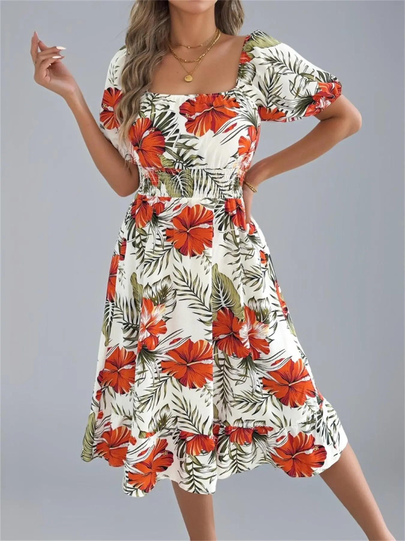 Beautiful summer dress. Good quality, very stretchy. Comfortable perfect for any occasion I would buy again.