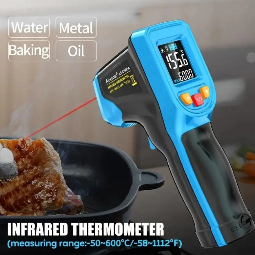 Measure temperatures quickly and accurately with the Aicevoos Handheld Digital Infrared Thermometer. This non-contact thermometer uses laser technology for precise readings. Perfect for a variety of industries including food service, automotive, and manufacturing.