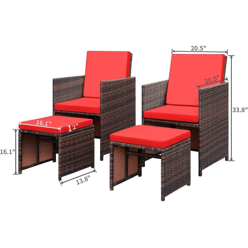 HOMALL 4 Pieces Patio Wicker Furniture Conversation Set with Two Ottomans Collapsible Balcony Porch Furniture, Red