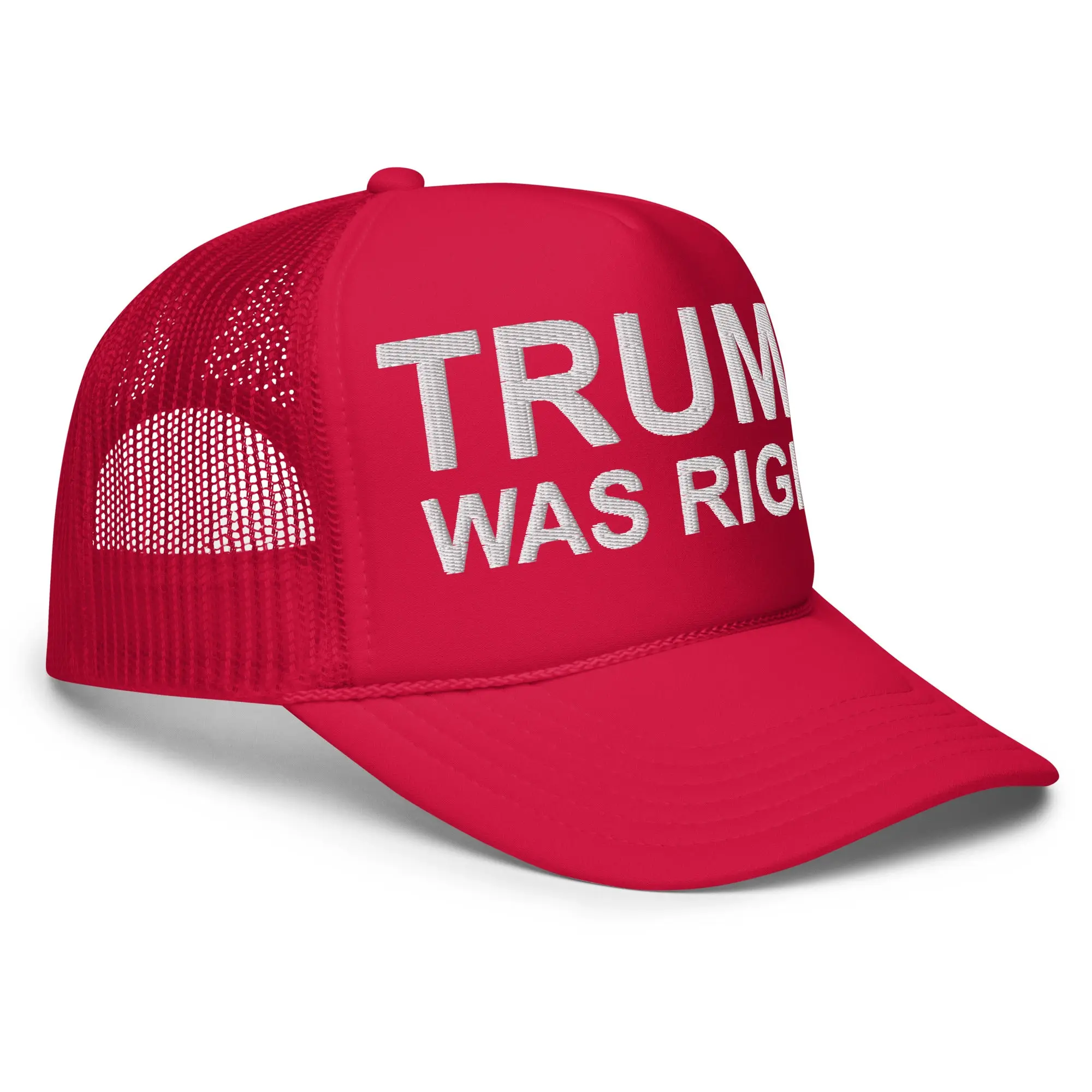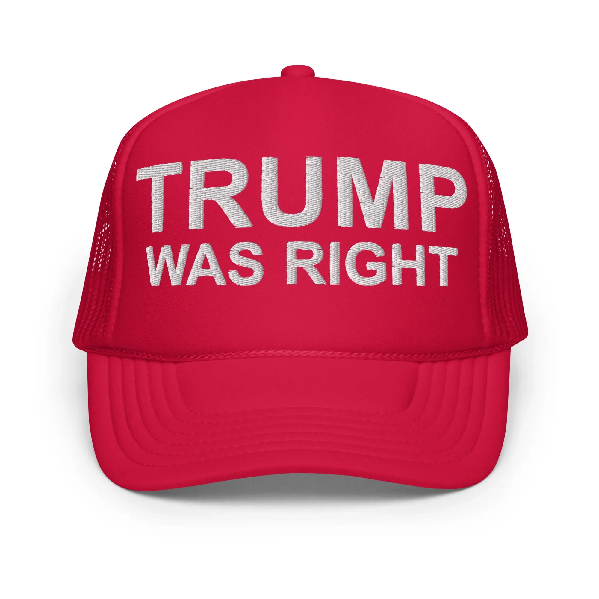 Evoke a range of emotions and spark conversations with our attention-grabbing red hat, proudly displaying the words "TRUMP WAS RIGHT" in crisp, white letters. This striking accessory doesn't just sit on your head – it carries a message that's impossible to ignore.