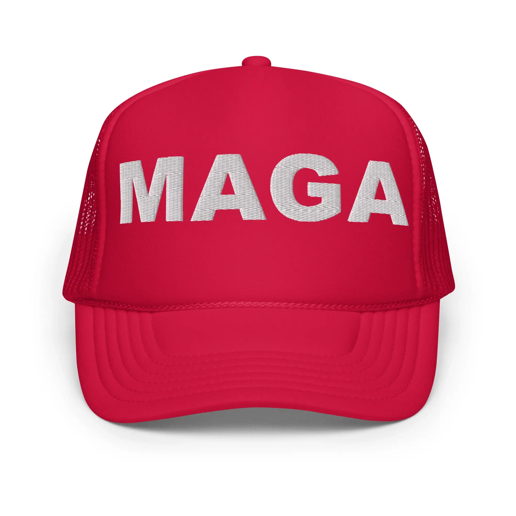 Evoke a range of emotions and spark conversations with our attention-grabbing red hat, proudly displaying the words "MAGA" in crisp, white letters. This striking accessory doesn't just sit on your head – it carries a message that's impossible to ignore.