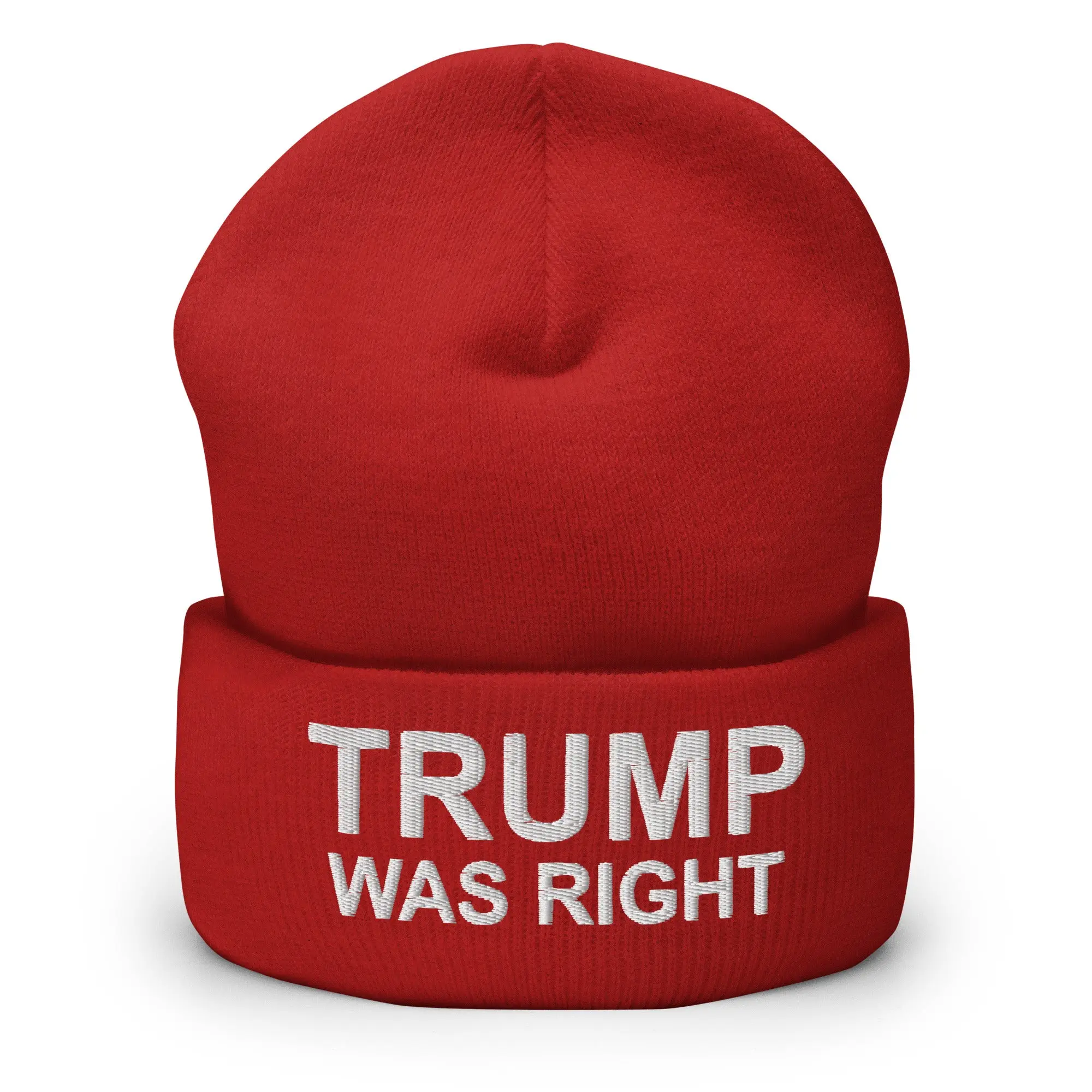 Evoke a range of emotions and spark conversations with our attention-grabbing red hat, proudly displaying the words "TRUMP WAS RIGHT" in crisp, white letters. This striking accessory doesn't just sit on your head – it carries a message that's impossible to ignore.