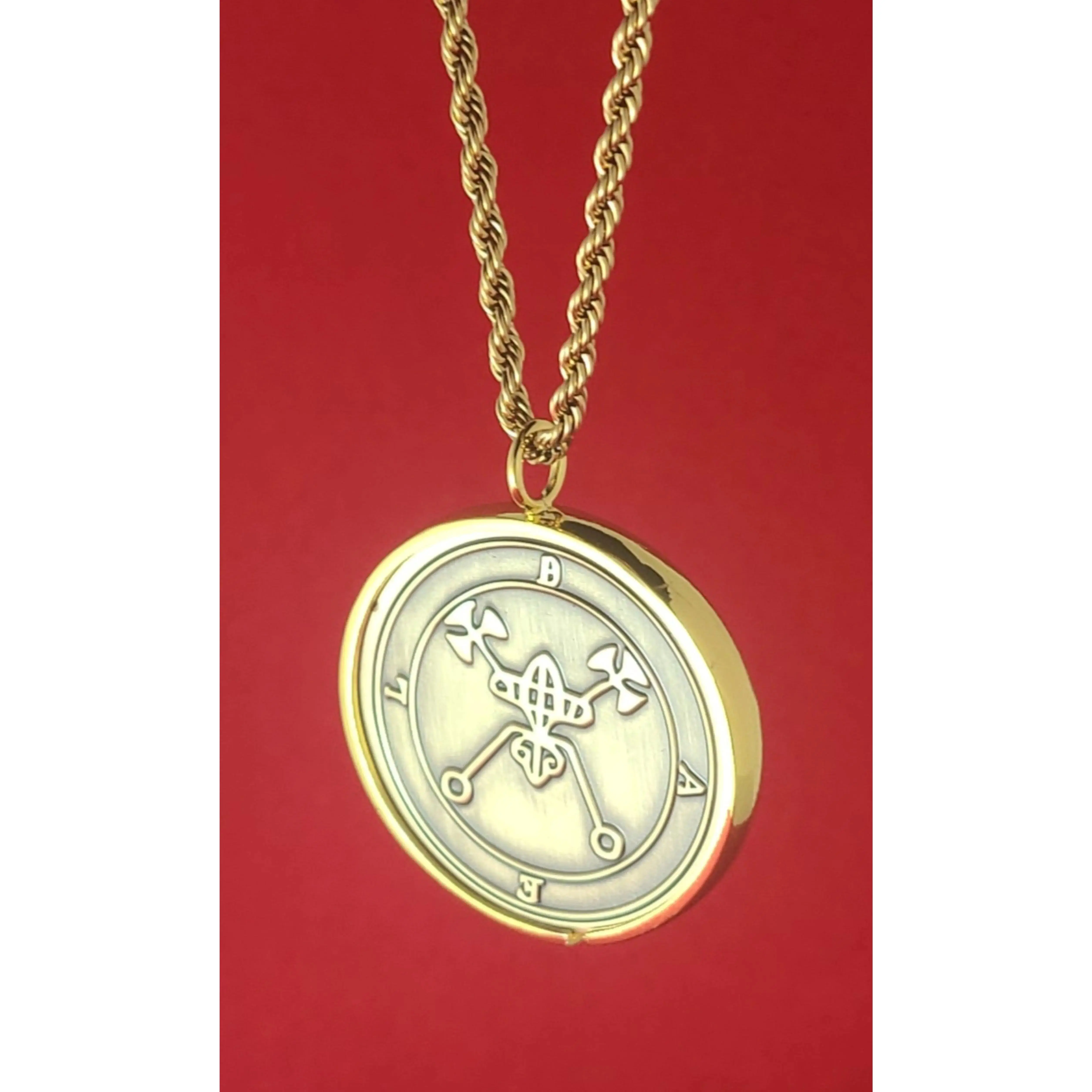 The Bael Sigil Necklace is a ceremonial talisman based on the seal of Bael, the First Principal Spirit of the Ars Goetia. This piece is intended for experienced practitioners and is presented as a historical and esoteric artifact rooted in classical Solomonic tradition.