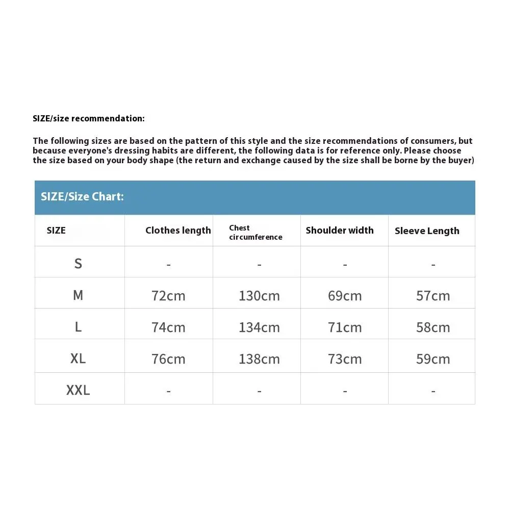 1. Asian sizes are 1 to 2 sizes smaller than European and American people. Choose the larger size if your size between two sizes. Please allow 2-3cm differences due to manual measurement. 2. Please check the size chart carefully before you buy the item, if you don't know how to choose size, please contact our customer service. 3.As you know, the different computers display colors differently, the color of the actual item may vary slightly from the following images.