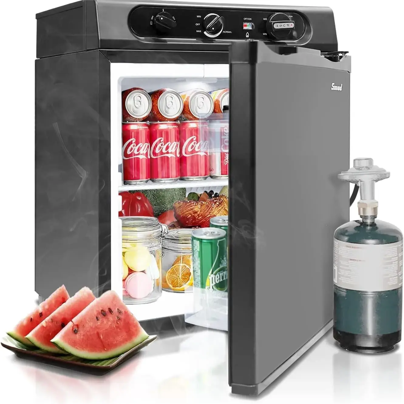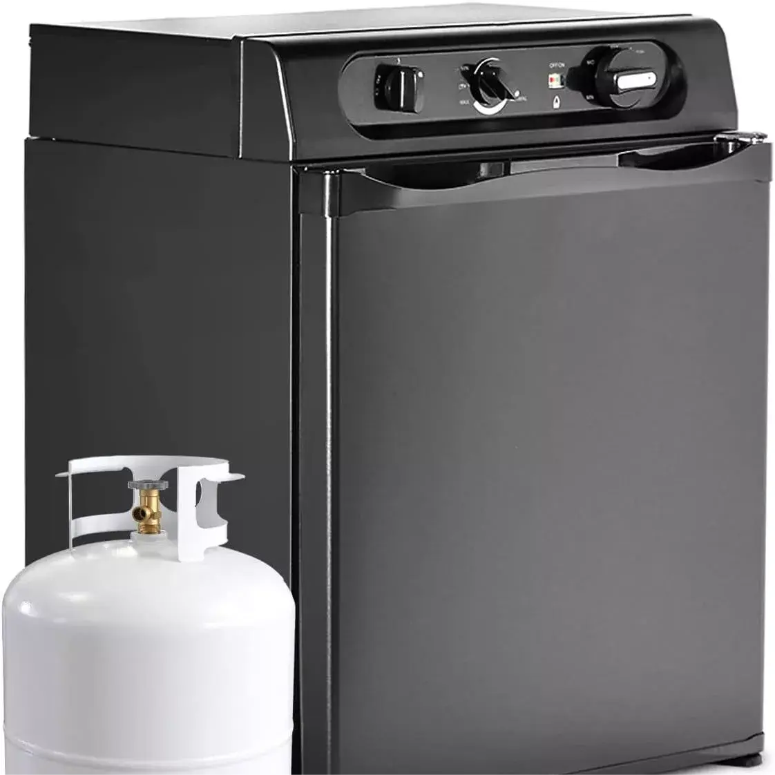 ·Measuring 18.2"D x 18.2"W x 23.6"H, very compact mini propane fridge that is perfect for small space, perfect Christmas gift for the one you love Reading the user manual is essential. Come with a free pressure regulator.