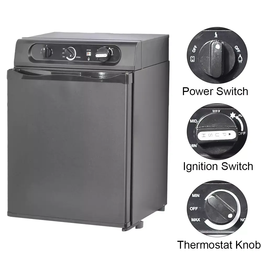 ·3 WAY REFRIGERATOR & FLAME INDICATOR - LPG, 110V & 12V 3 powers working. Easy connection of gas power, 3/8" Male flare