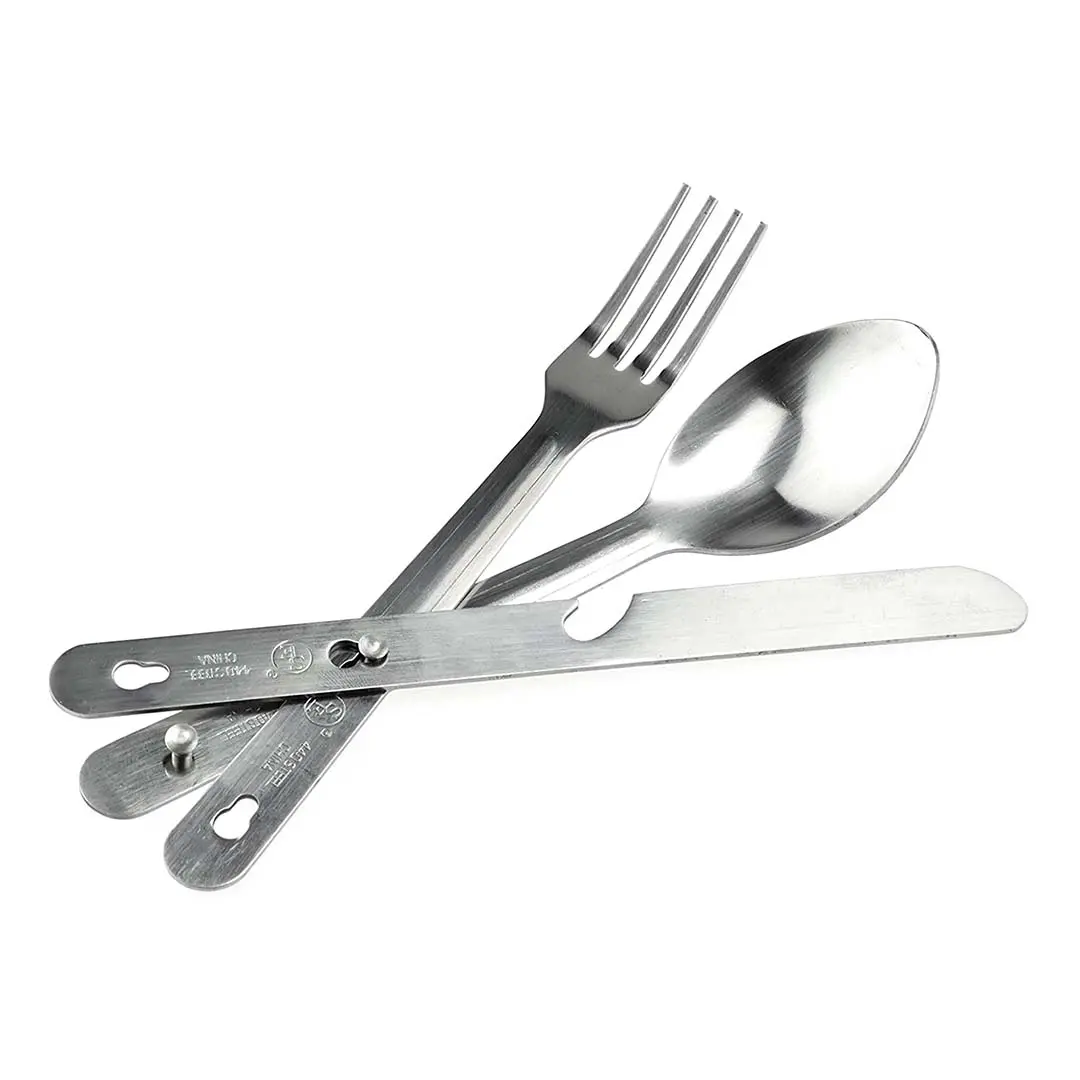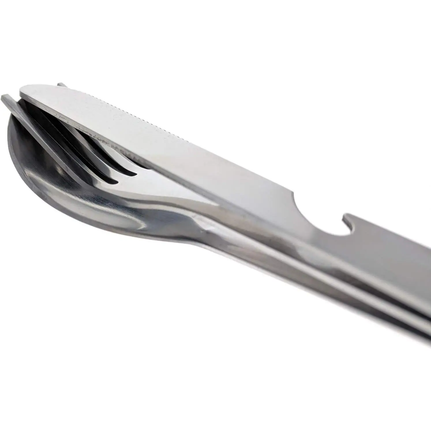 Built from durable stainless steel, each utensil is made to handle rugged outdoor use without adding unnecessary weight to your gear. The knife features a built-in can opener, giving you added functionality for preparing meals on the go—no extra tools required. From quick trail lunches to campsite dinners, this set delivers reliable performance wherever you are.