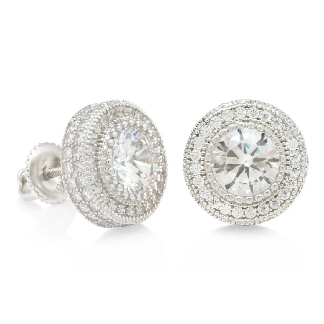 The 14K Gold .925 Sterling Silver Button CZ Earrings