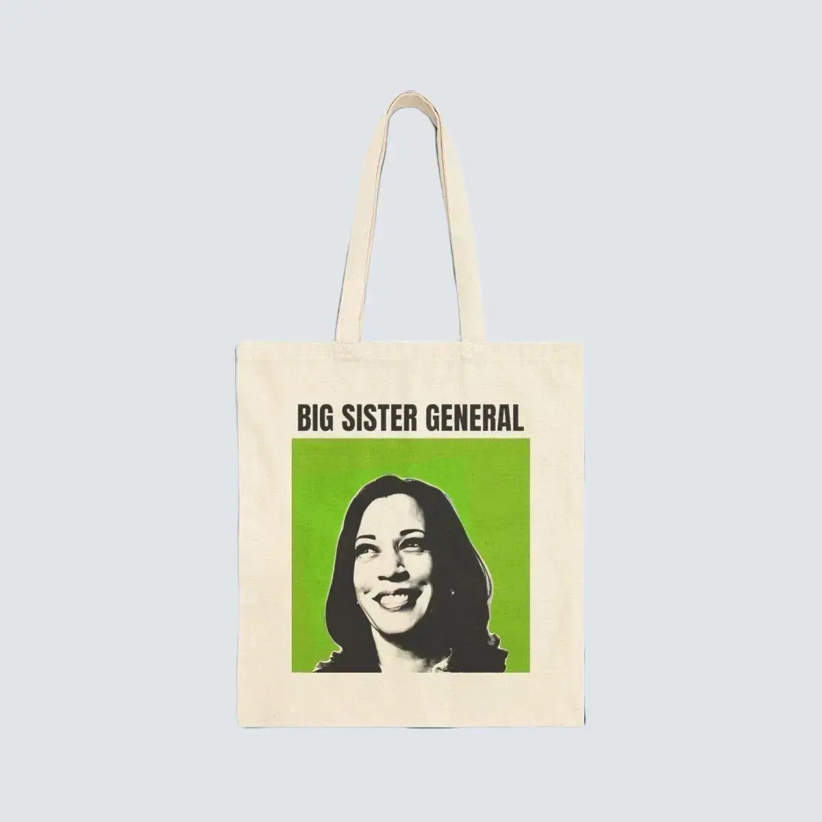 This Kamala Harris 2024: BIG SISTER GENERAL Cotton Canvas Tote Bag is a stylish and versatile accessory perfect for carrying your essentials with ease.