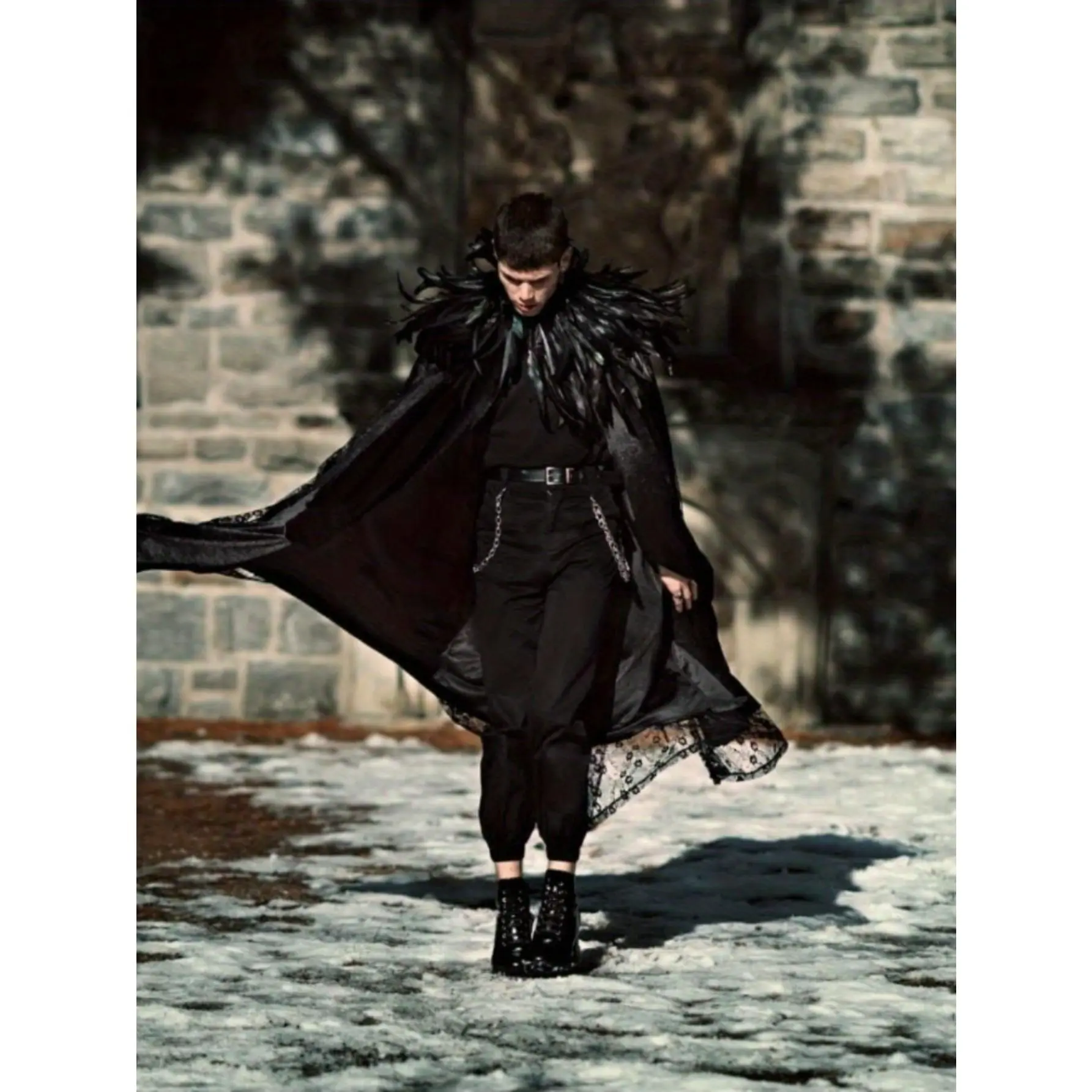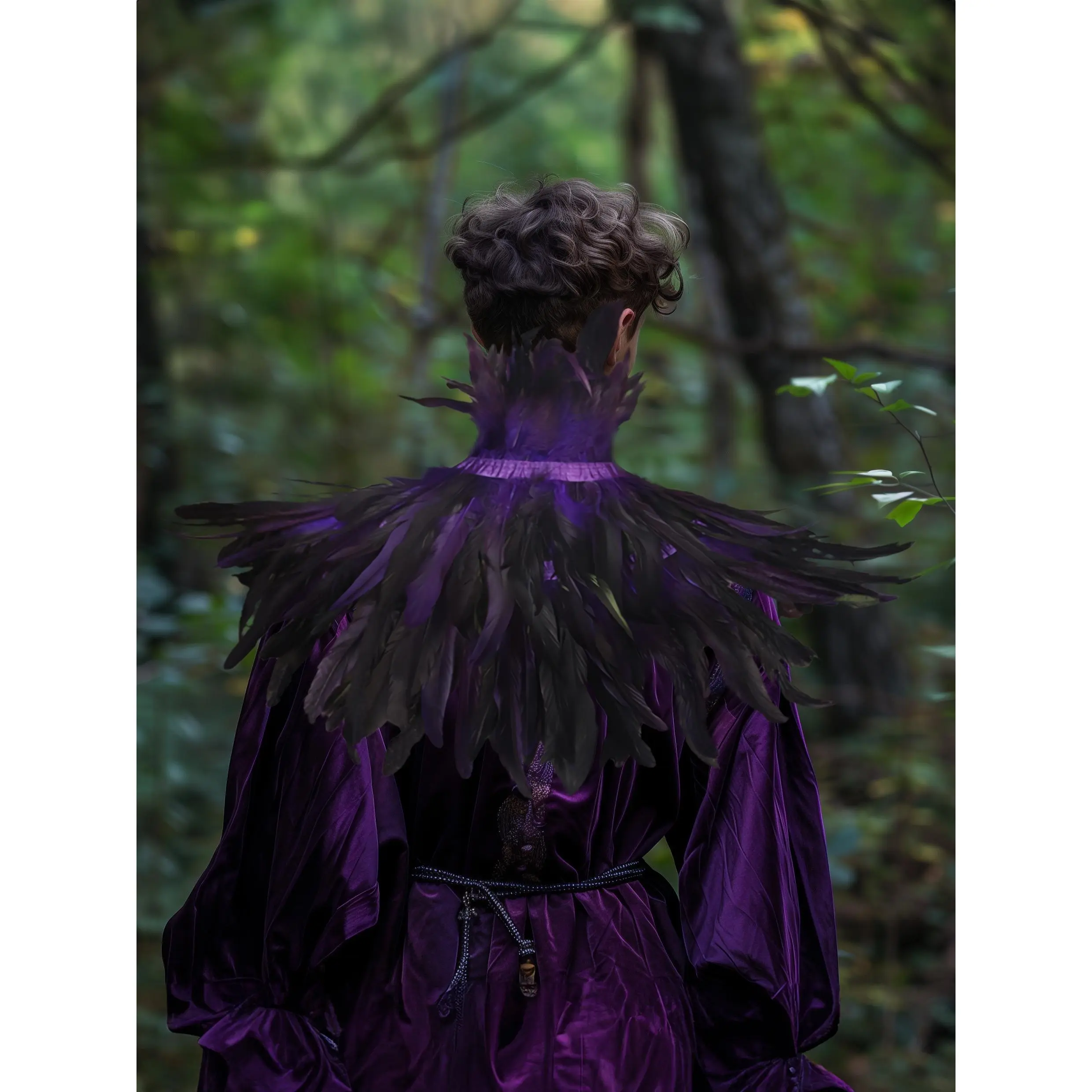 Black Witch Feather Collar Maleficent Crow Shawl Costume Halloween Swan Wings Accessories Women's Cloak Womenswear Clothing
