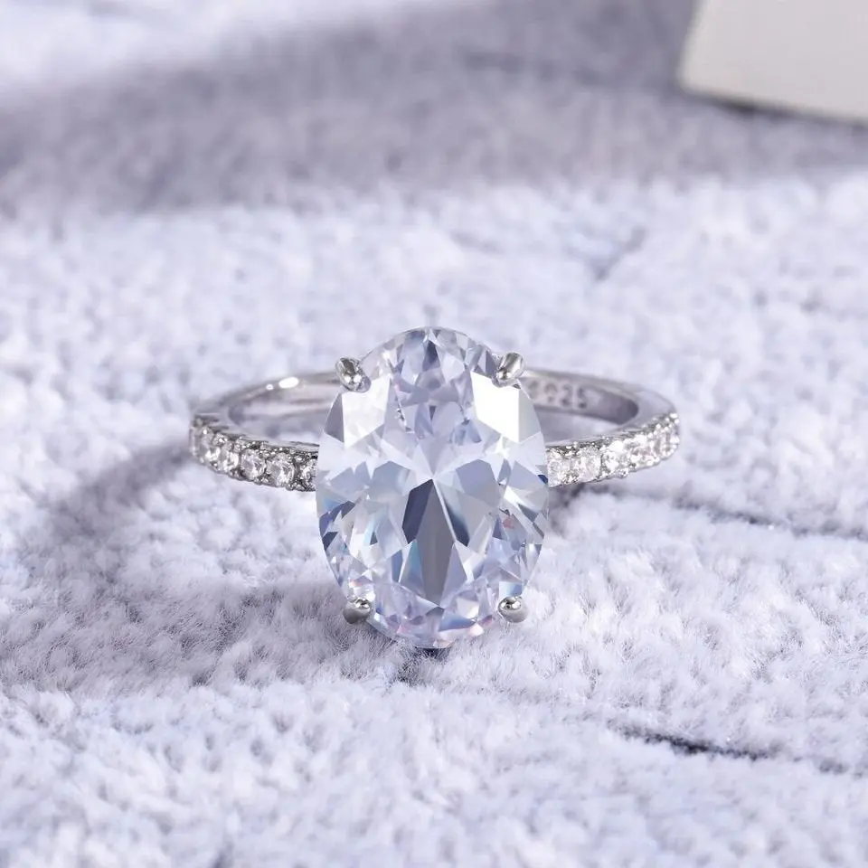 This elegant engagement ring features an oversized 14mm oval CZ stone set in silver. The large size dazzling stone will surely catch everyone's attention as it sparkles on your finger. Make a bold statement of love with this stunning ring.