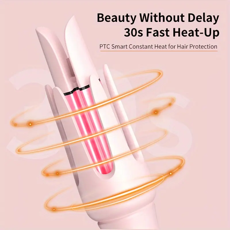 Newme Professional Styling Made Easy: 1.25 inch (32mm) Professional Automatic Rotating Curling Iron with Tourmaline, Fast Heating, Dual Voltage, and Smart Sensor - Perfect for Comfortable and Safe Hair Styling, Exclusive Gift, Pink Curler