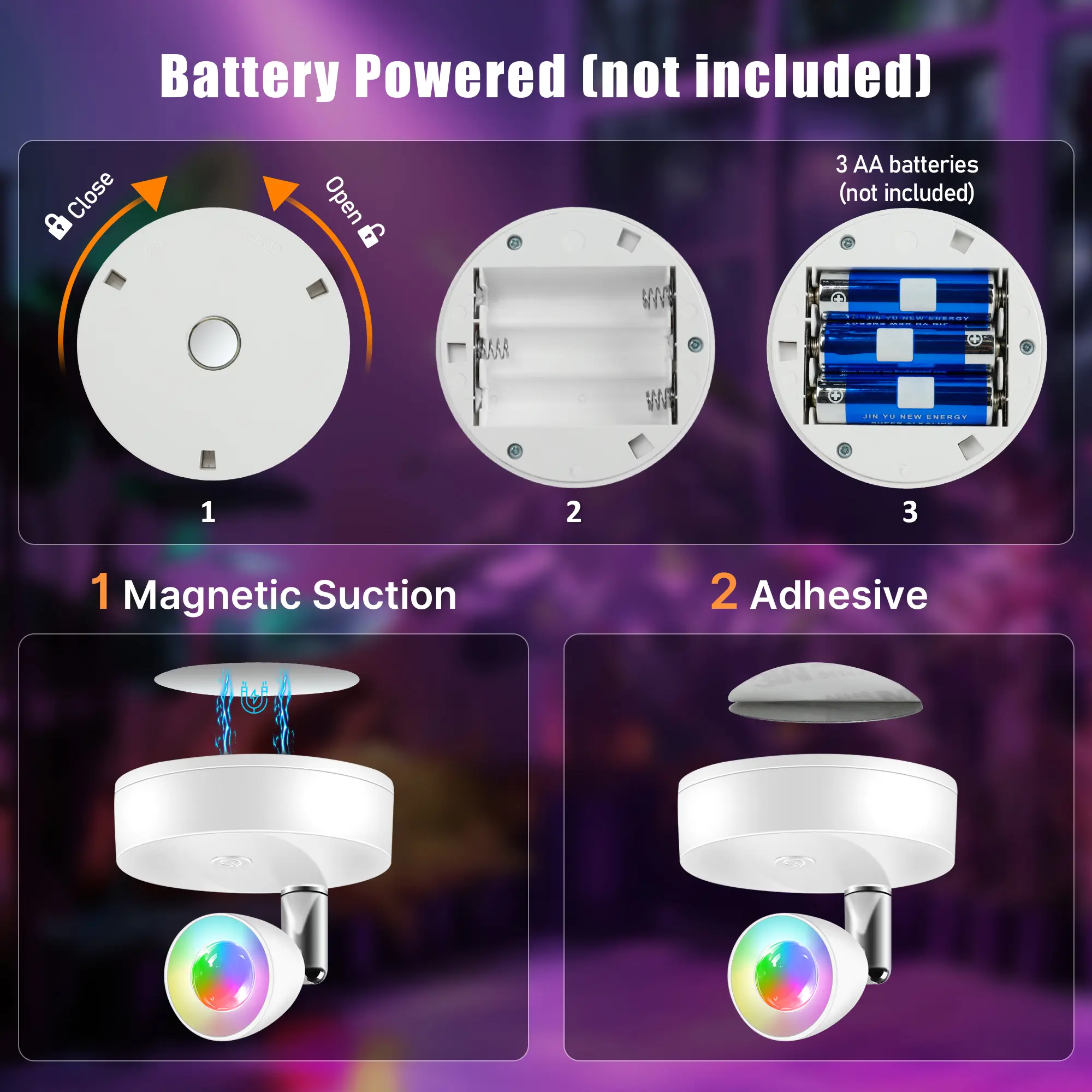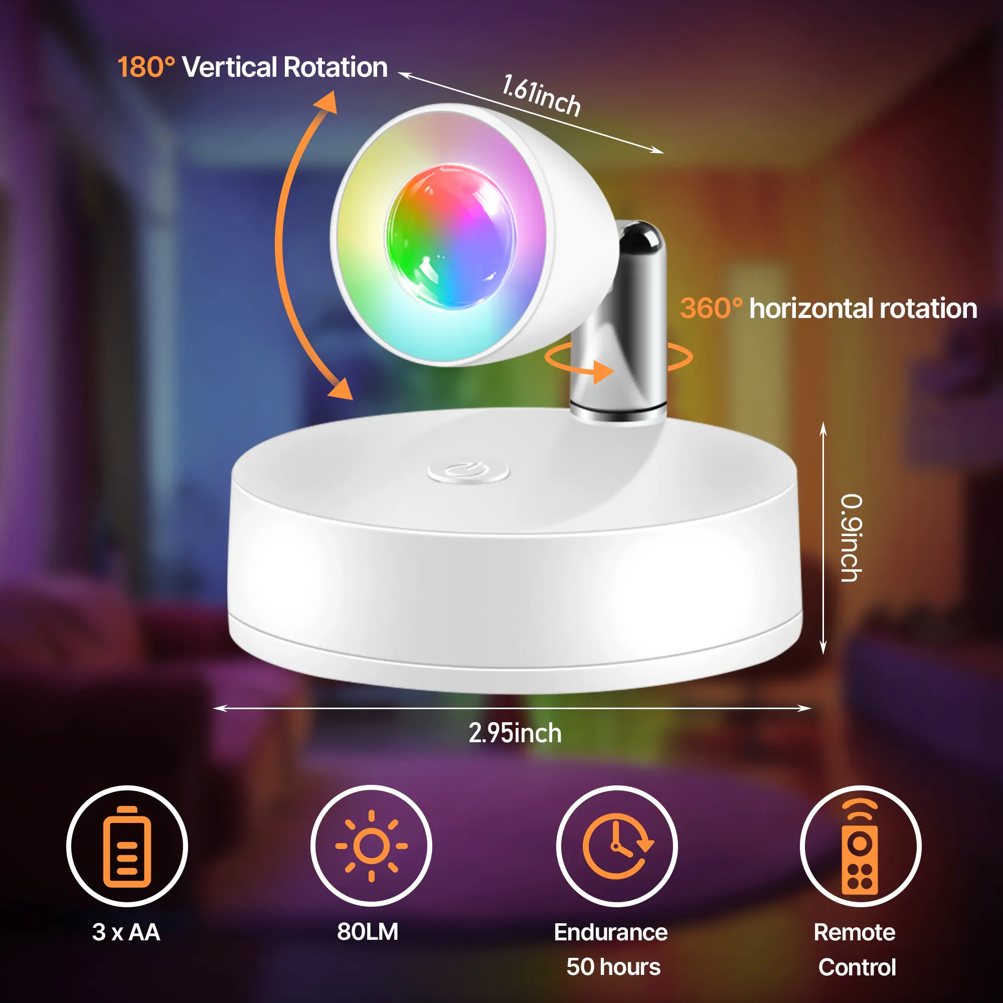 Button and Remote Control: This magnetic indoor spotlight offers dual control options - easily switch between button and remote control. The included remote simplifies the process, allowing you to manage on/off, RGB settings, brightness adjustments and timing.