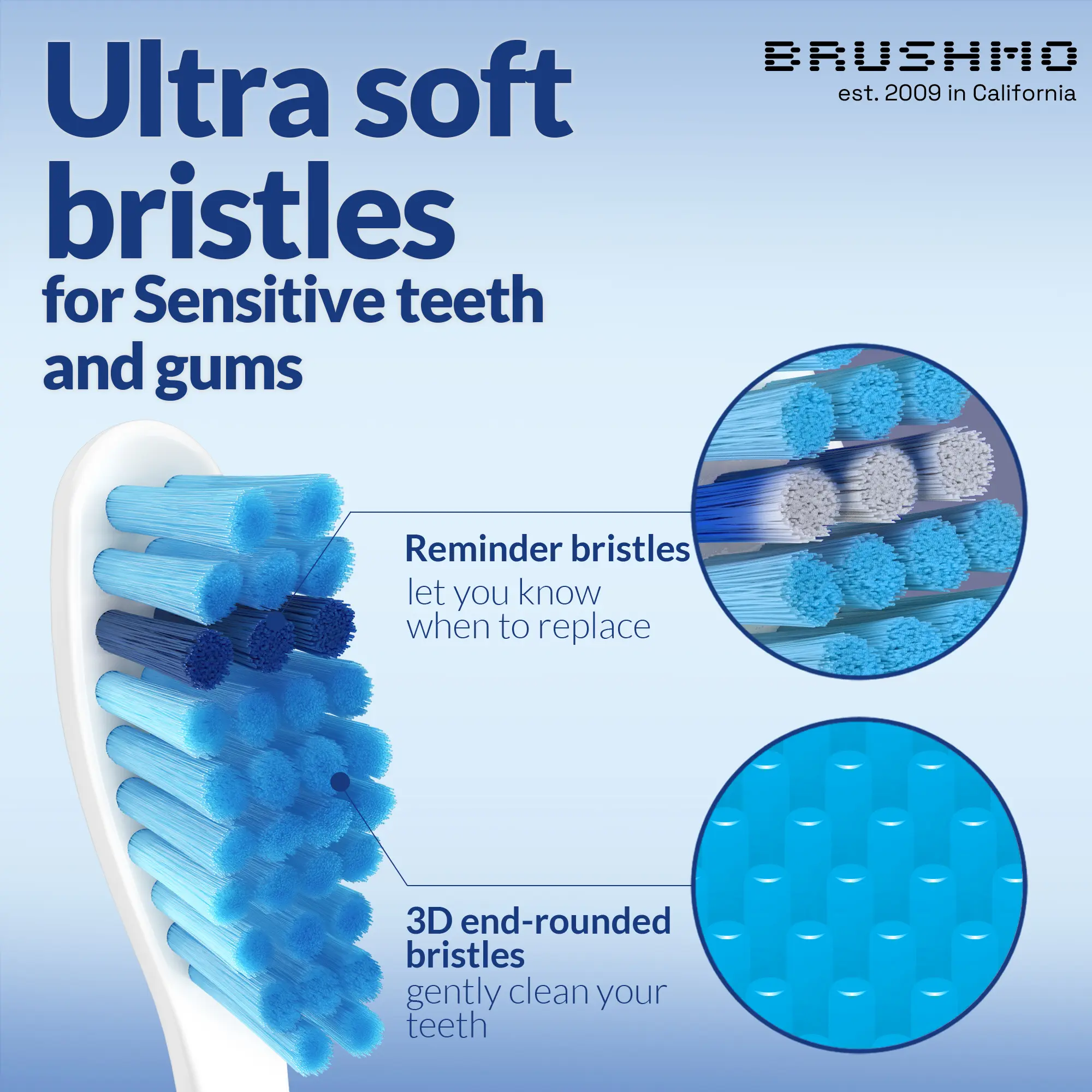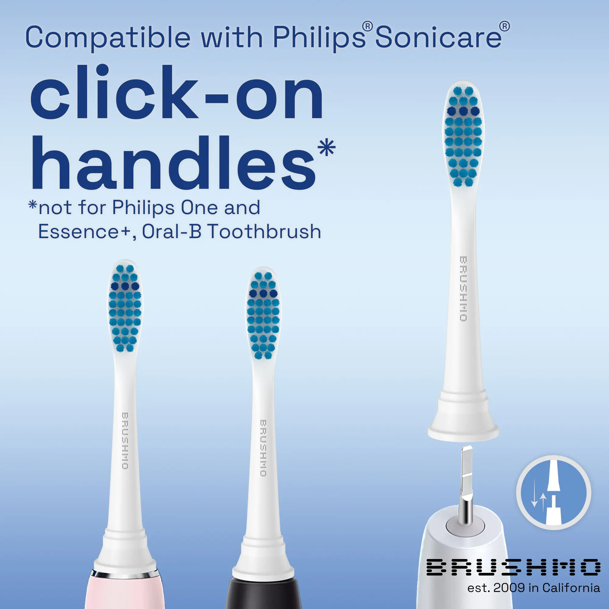 Keep your sensitive teeth and gums healthy with Brushmo Extra Soft Replacement Toothbrush Heads. These replacement heads are compatible with Philips Sonicare S Sensitive Teeth Brush models HX6053 and HX6064.