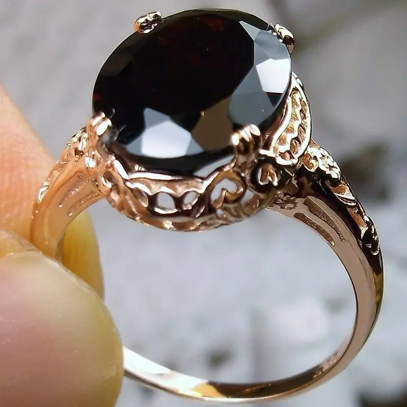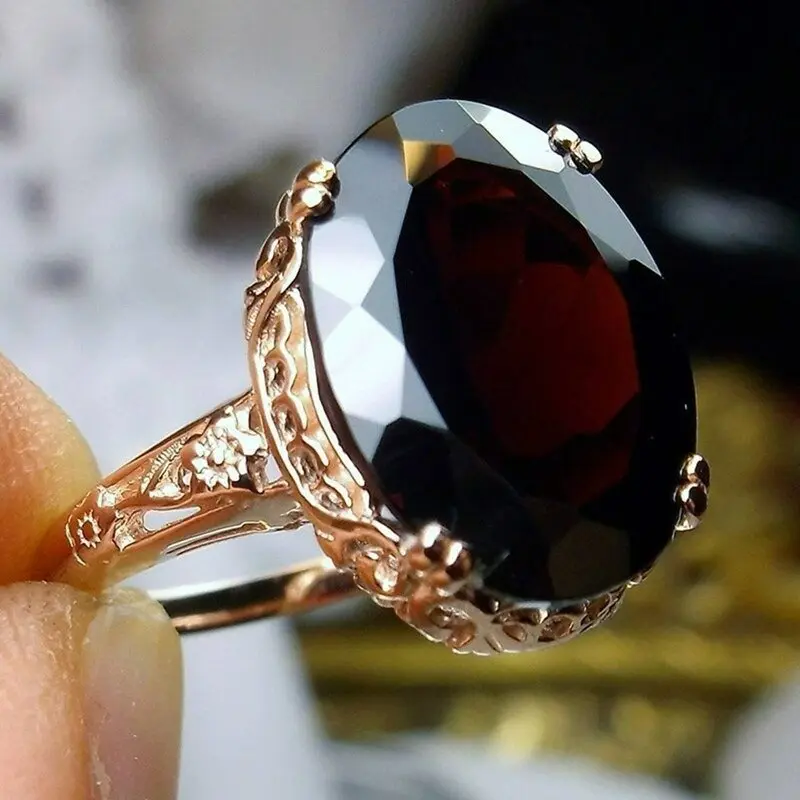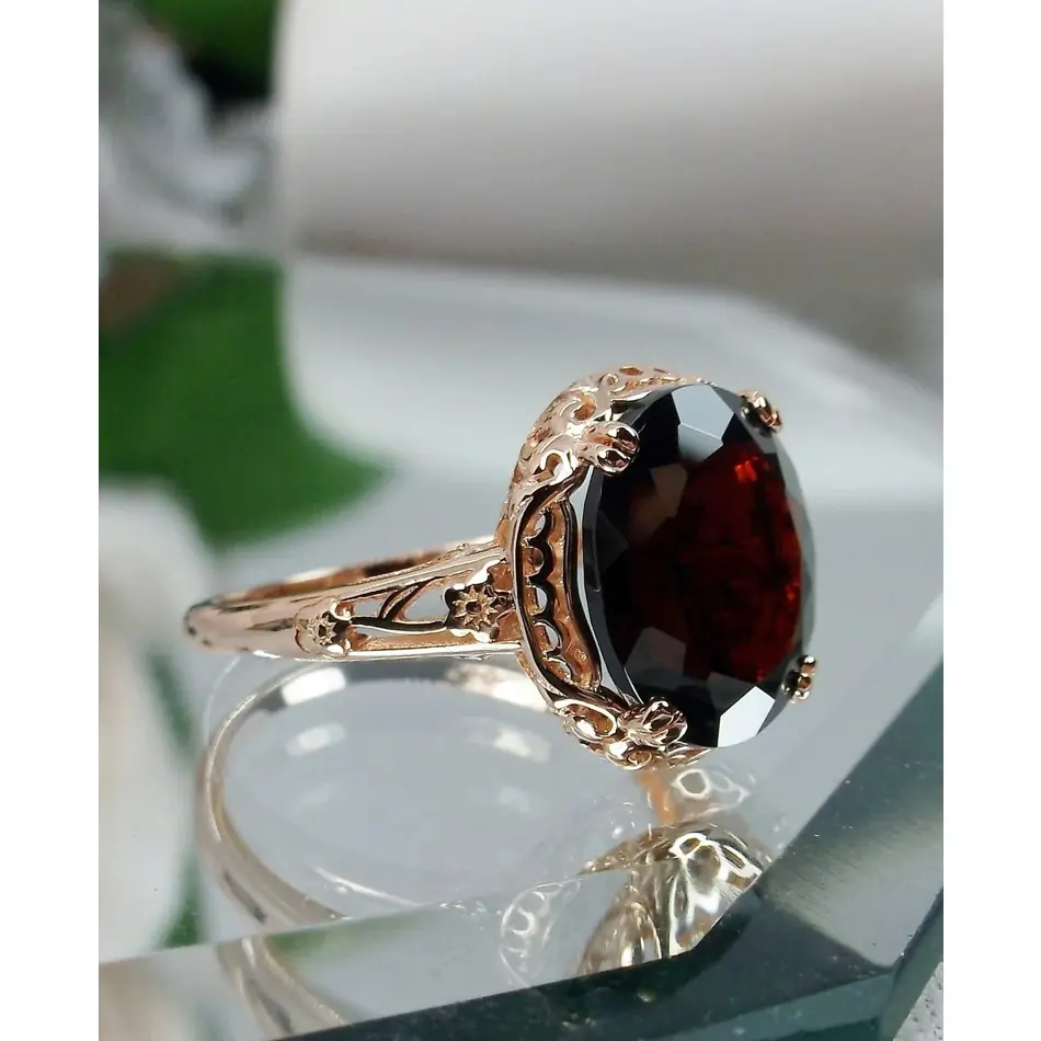 Sterling Silver 14mm Oval Red Garnet Rose Gold Ring Artificial Gemstone Adjustable Ring
