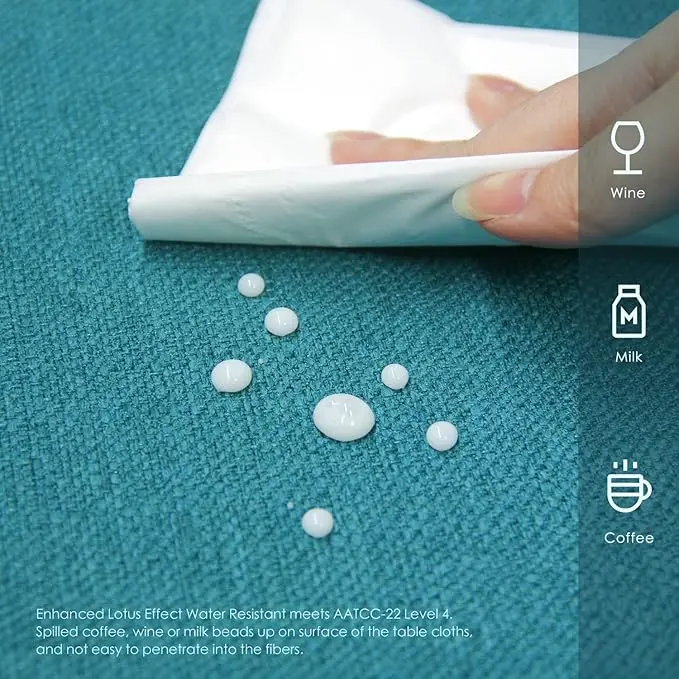 【Spill-proof 】Featured a fade and spill resistant fabric, our tabletop covers keep your tables and furniture from scratches, stains and sun rays. Table cloth fabric has excellent water resistant, liquids and spills will bead up